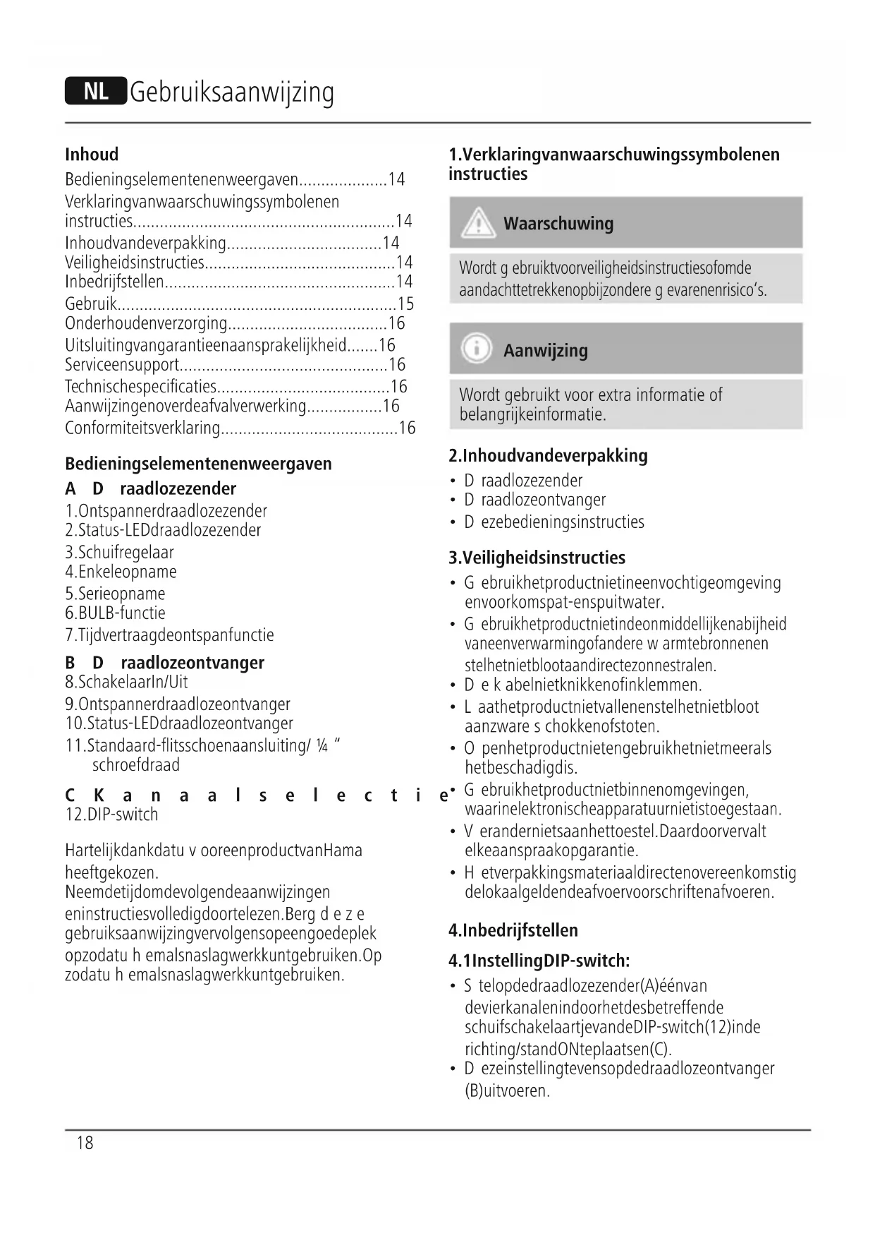 - Deze instelling tevens op de draadloze ontvanger (B) uitvoeren.19 Aanwijzing