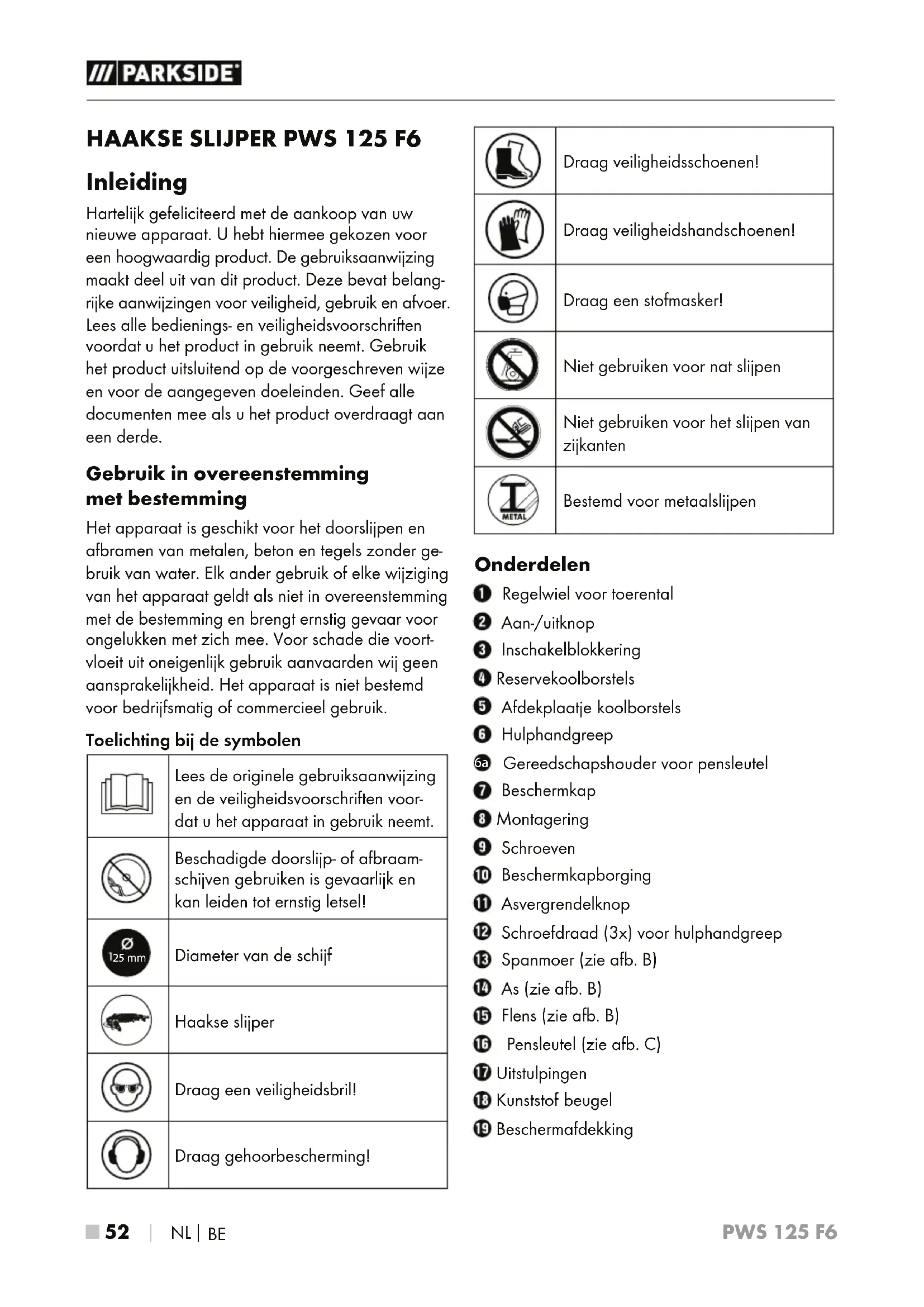 GEBRUIKSAANWIJZING PWS 125 F6 PARKSIDE