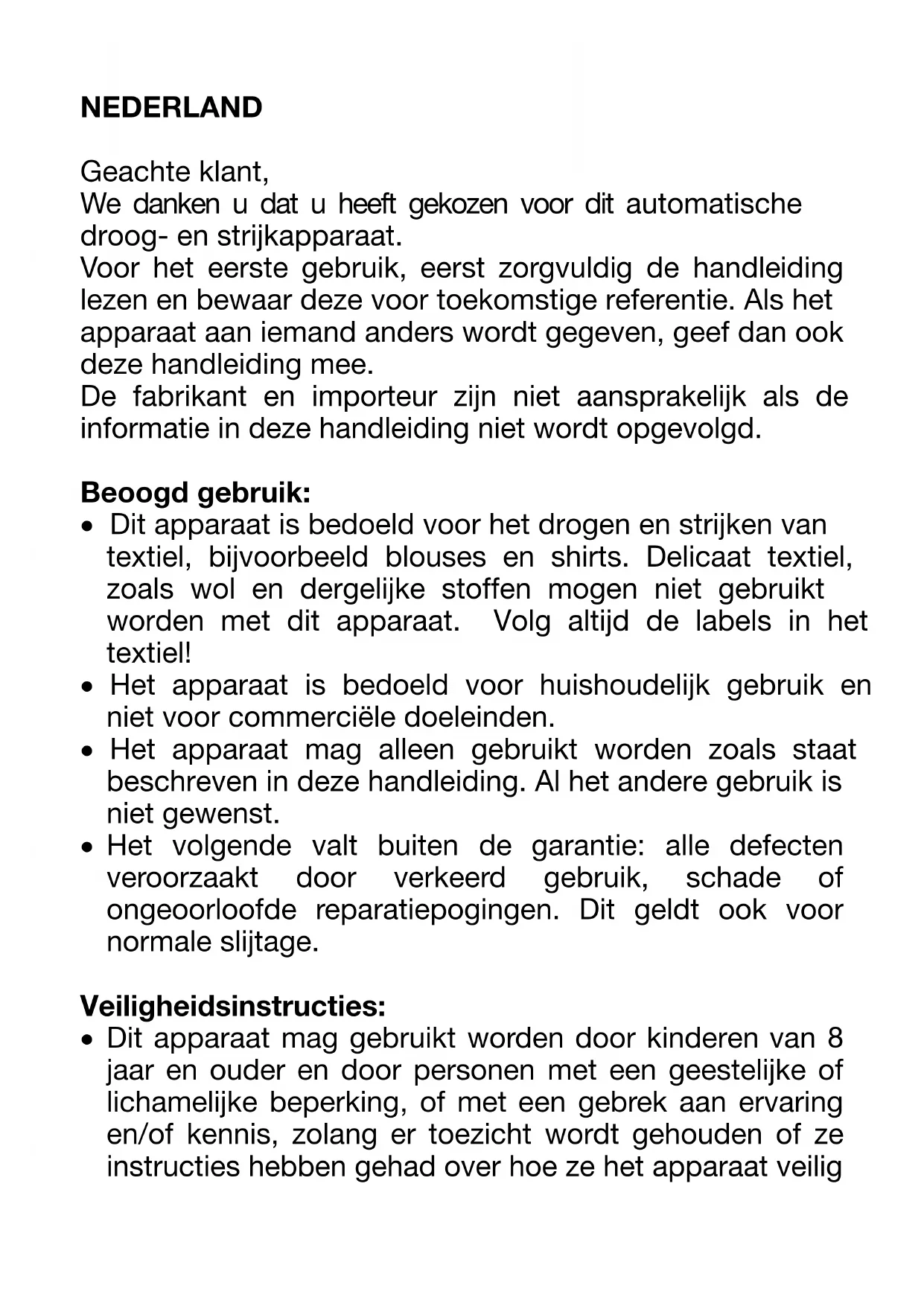 - Dit apparaat is bedoeld voor het drogen en strijken van textiel, bijvoorbeeld blouses en shirts. Delicaat textiel, zoals wol en dergelijke stoffen mogen niet gebruikt worden met dit apparaat. Volg altijd de labels in het textiel!