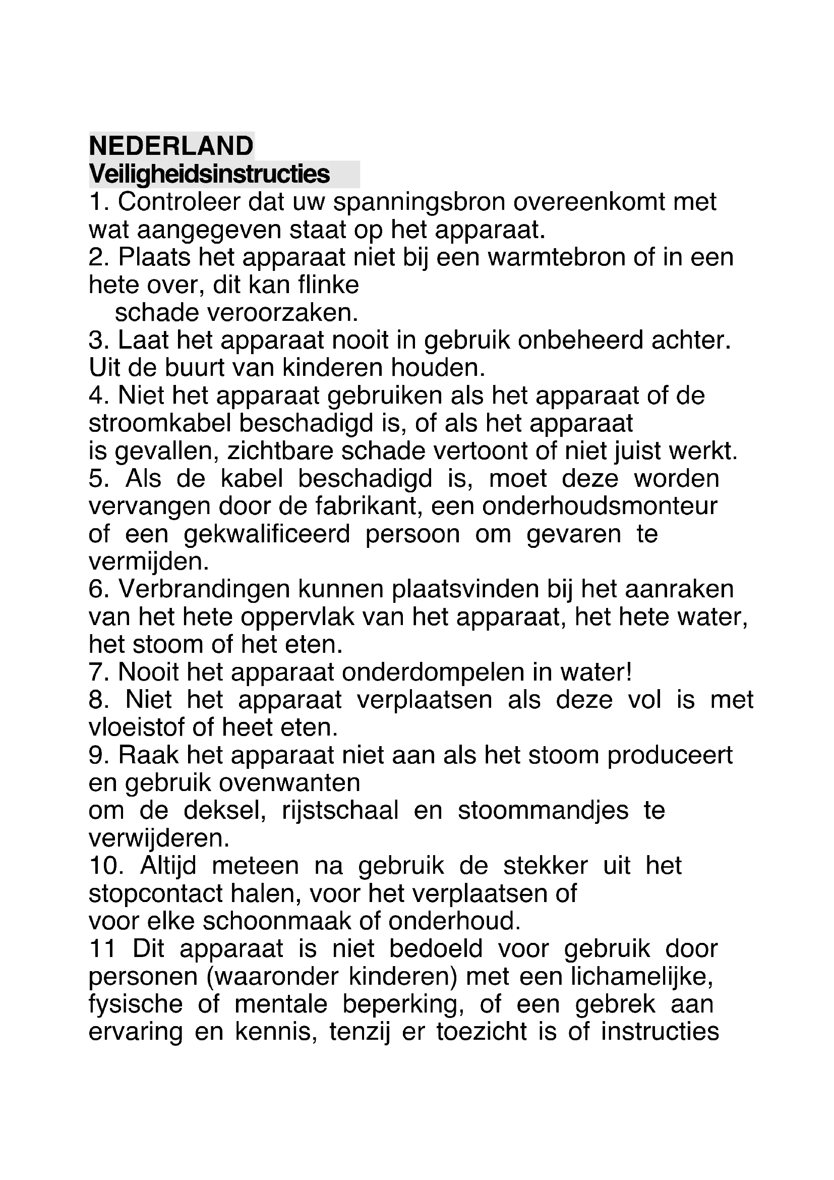 18. Laat het apparaat nooit onbeheerd achter tijdens