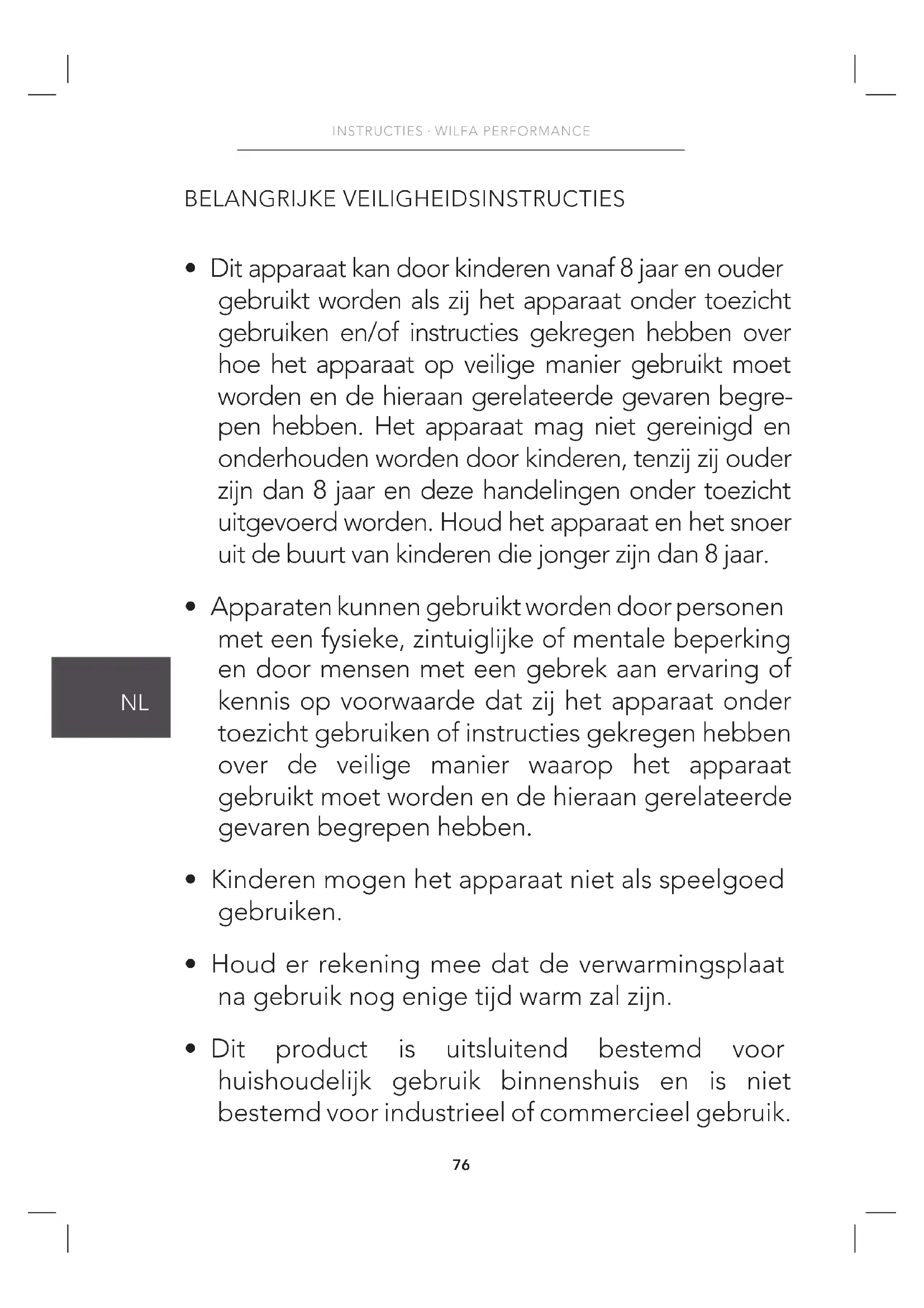 - Dit product is uitsluitend bestemd voor huishoudelijk gebruik binnenshuis en is niet bestemd voor industrieel of commercieel gebruik.77