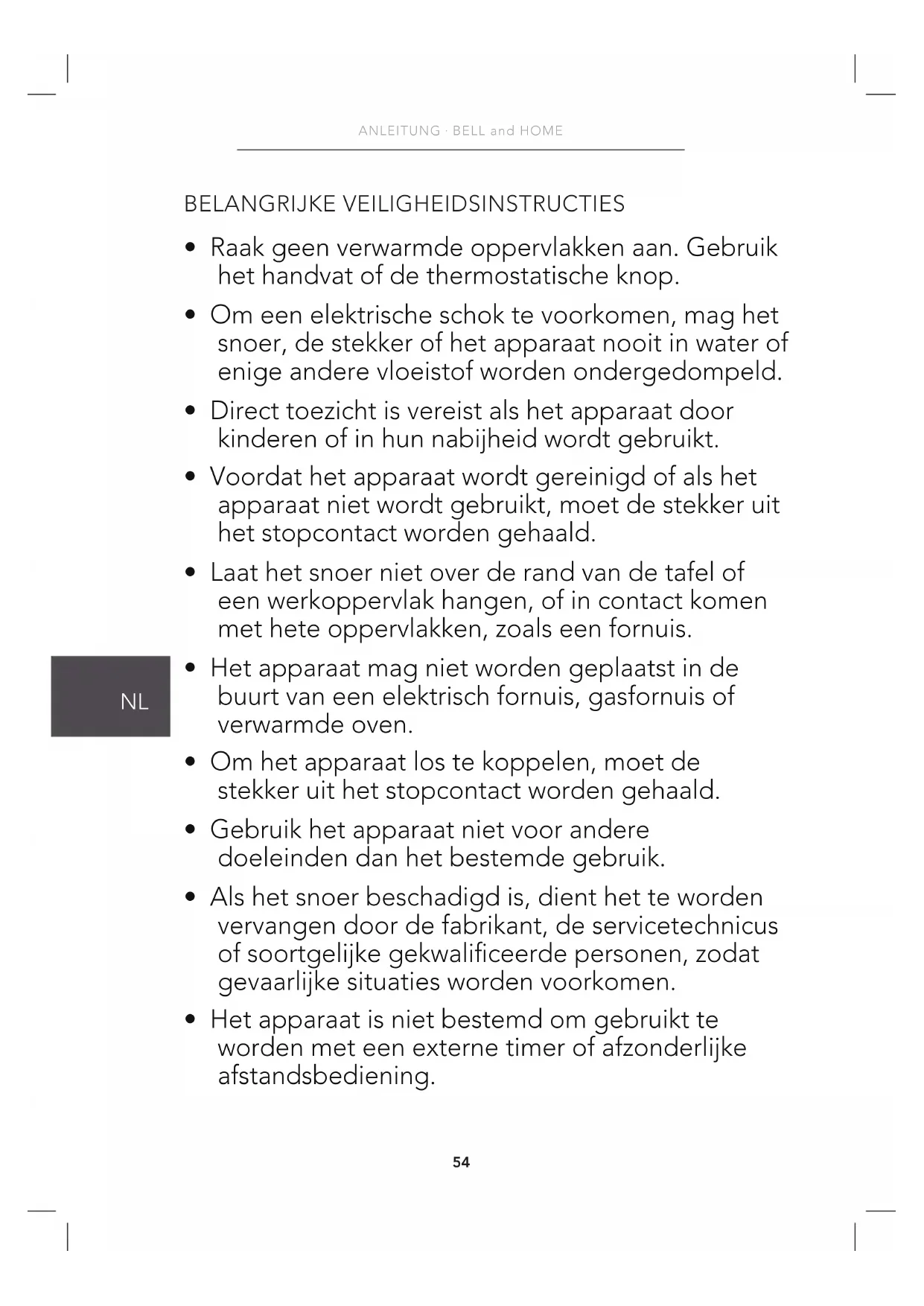 ANLEITUNG · BELL and HOME GARANTIE Wilfa biedt voor dit product een garantie van 5 jaar. Deze periode start op de dag van de aankoop. De garantie dekt storingen of defecten die tijdens de garantieperiode in het product optreden. Het aankoopbewijs van het product is het garantiebewijs. Als u aanspraak op de garantie wilt maken, dient u contact op te nemen met de winkel waar het product werd gekocht. De garantie is uitsluitend geldig voor producten die voor huishoudelijke toepassing werden gekocht en gebruikt. De garantie is niet geldig indien het product voor commerciële doeleinden wordt gebruikt. De garantie is niet geldig indien het product onjuist of nalatig werd gebruikt, indien de Wilfainstructies niet werden opgevolgd, indien het apparaat werd aangepast of een onbevoegde reparatie werd uitgevoerd. De garantie is ook niet geldig voor normale slijtage van het product, verkeerd gebruik, gebrekkig onderhoud, gebruik van onjuiste elektrische spanning, of: