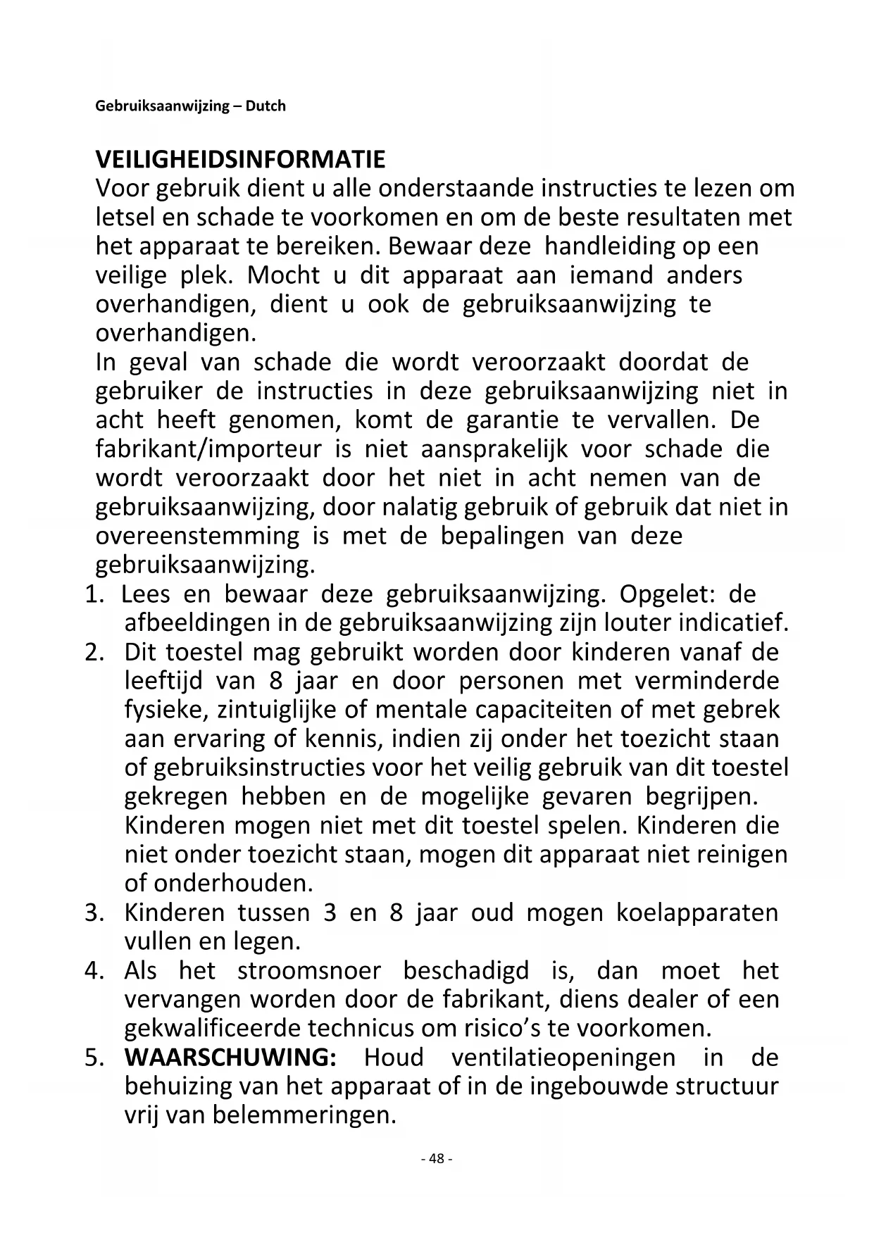 47. Gebruik de koelkast niet voor niet-huishoudelijke