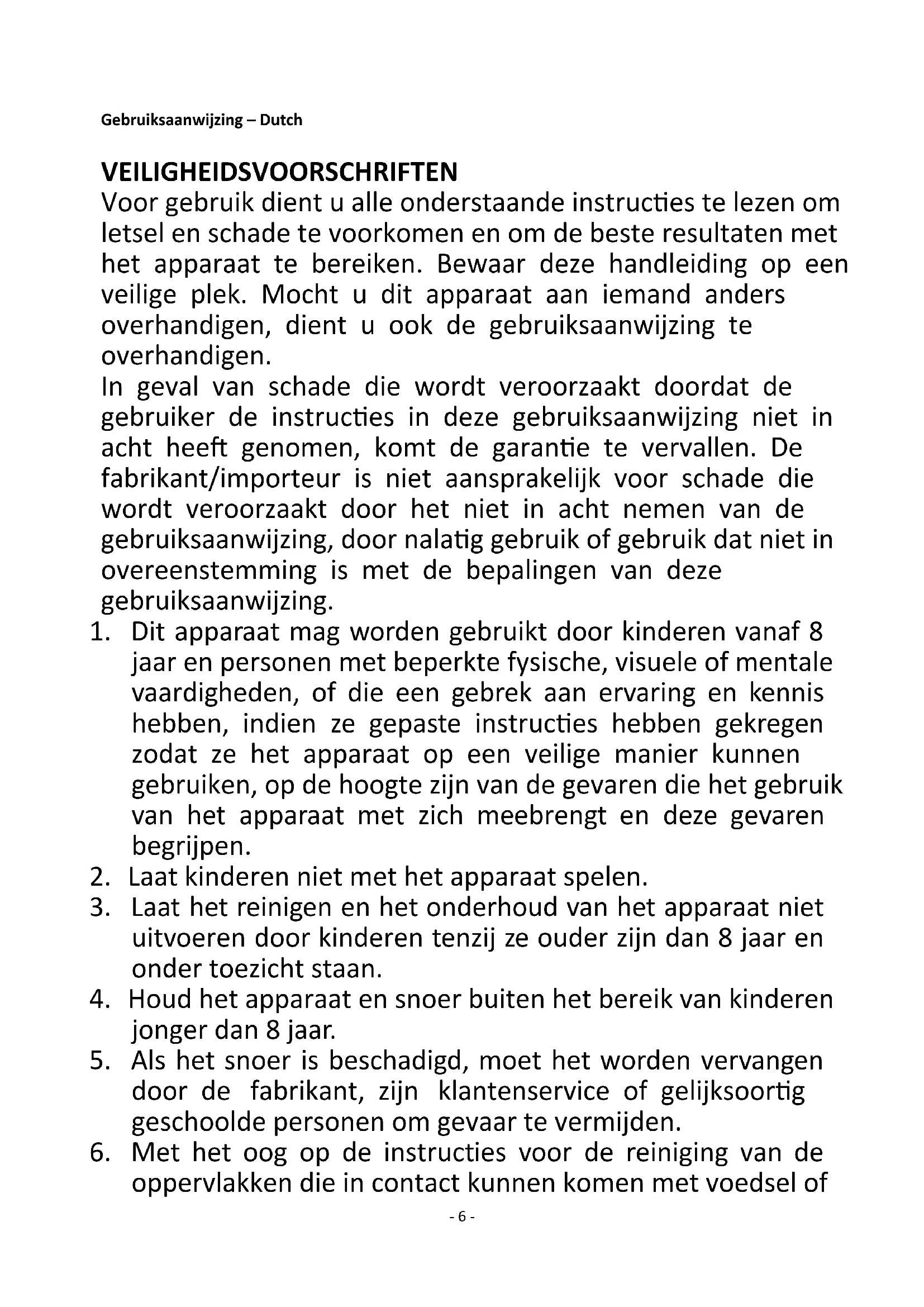 1. Dit apparaat mag worden gebruikt door kinderen vanaf 8