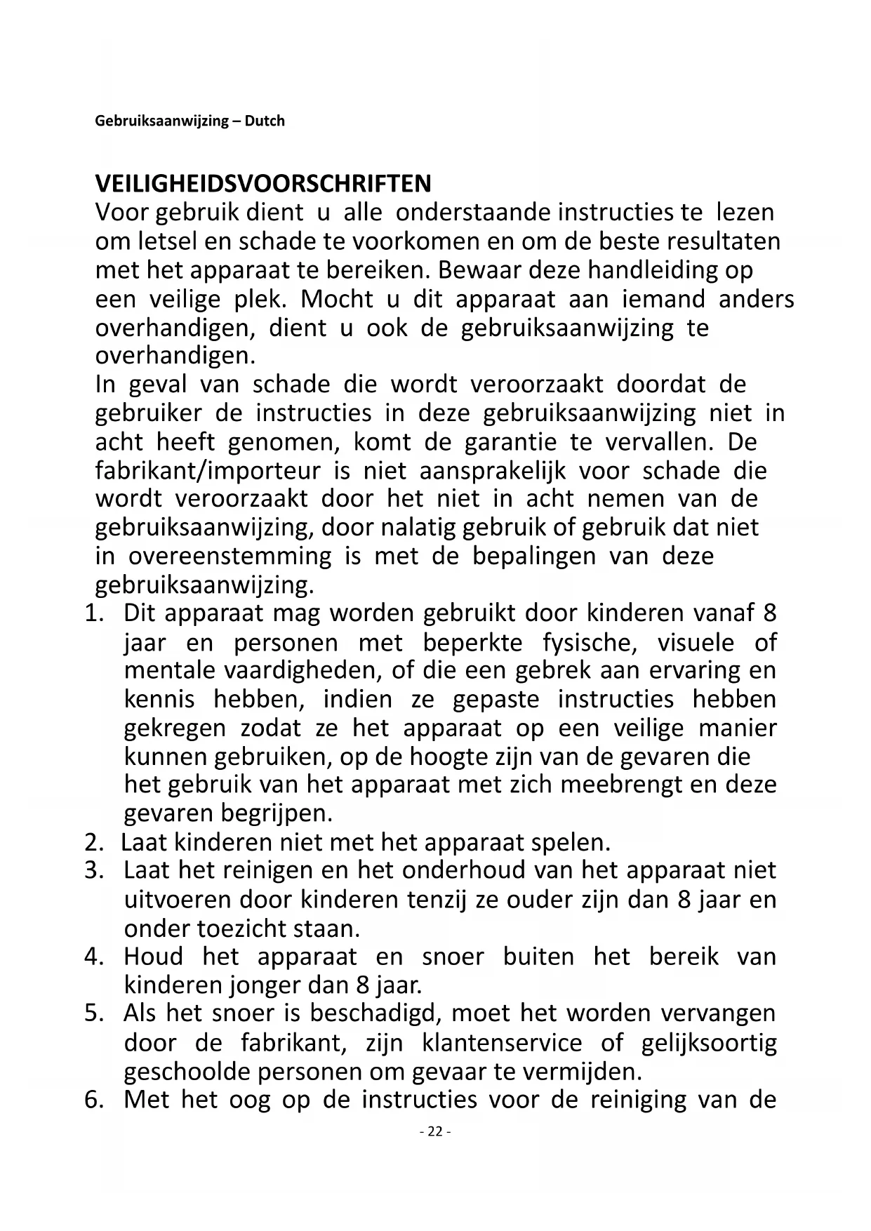 1. Dit apparaat mag worden gebruikt door kinderen vanaf 8