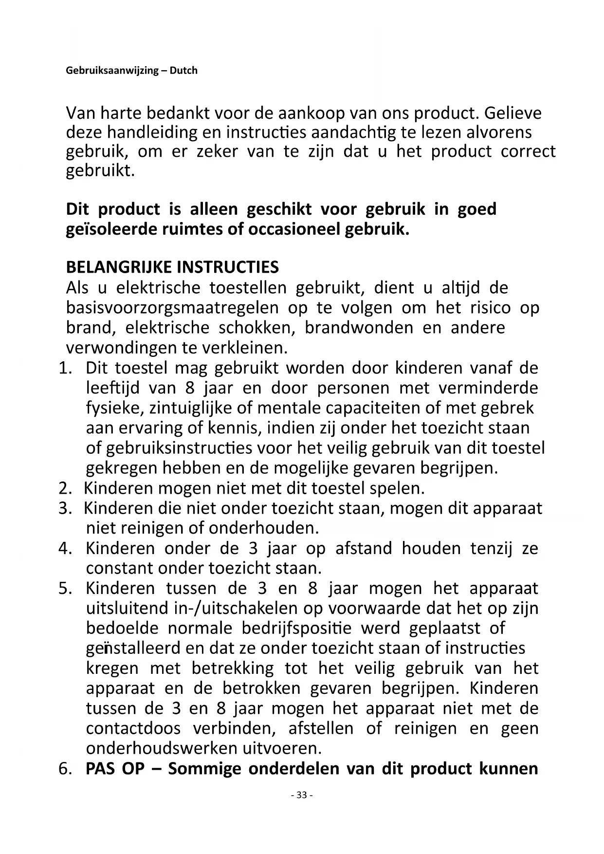 33. Dit toestel is geen speelgoed.