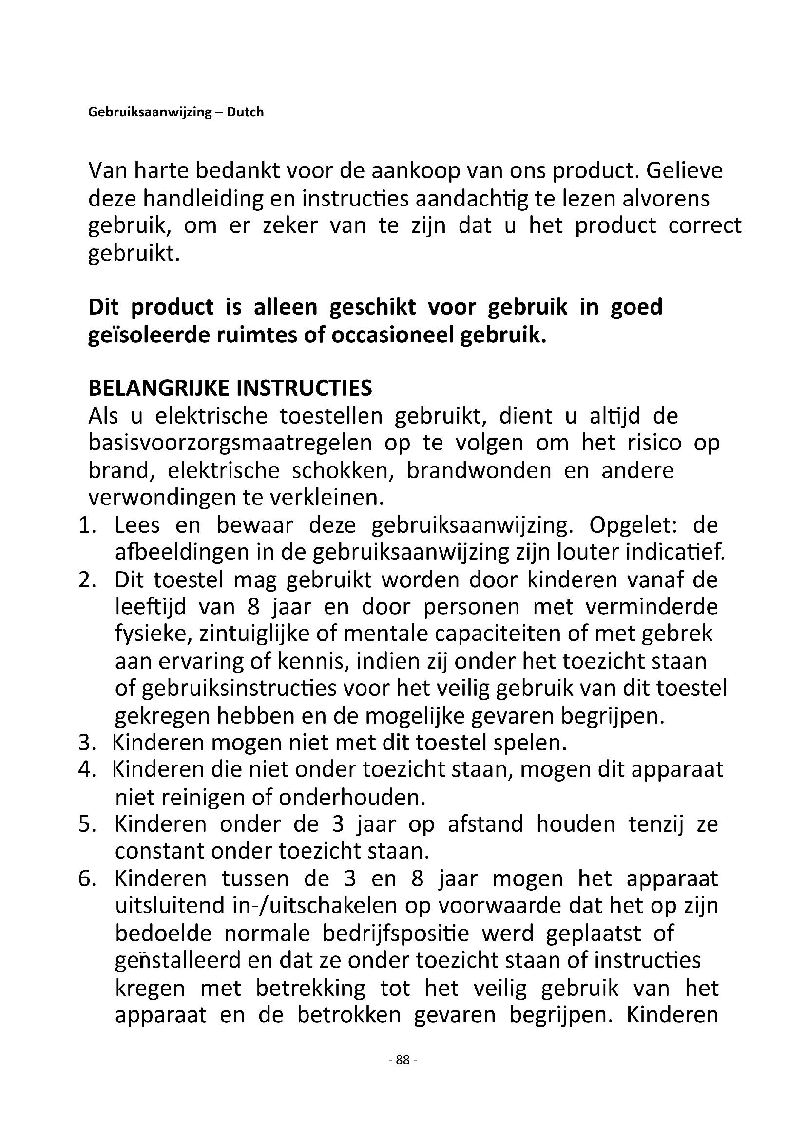 2. Dit toestel mag gebruikt worden door kinderen vanaf de