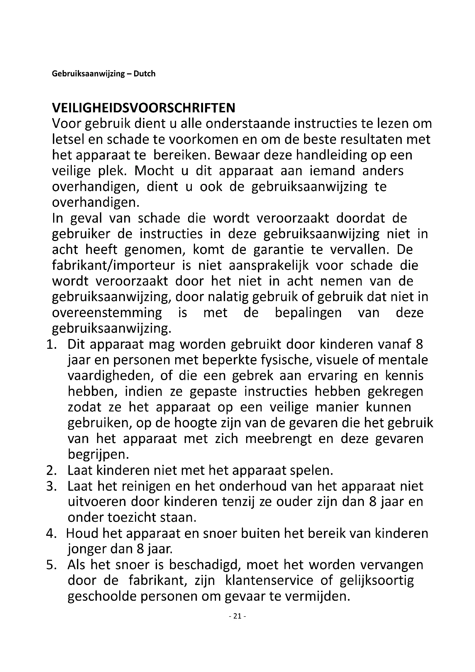 1. Dit apparaat mag worden gebruikt door kinderen vanaf 8