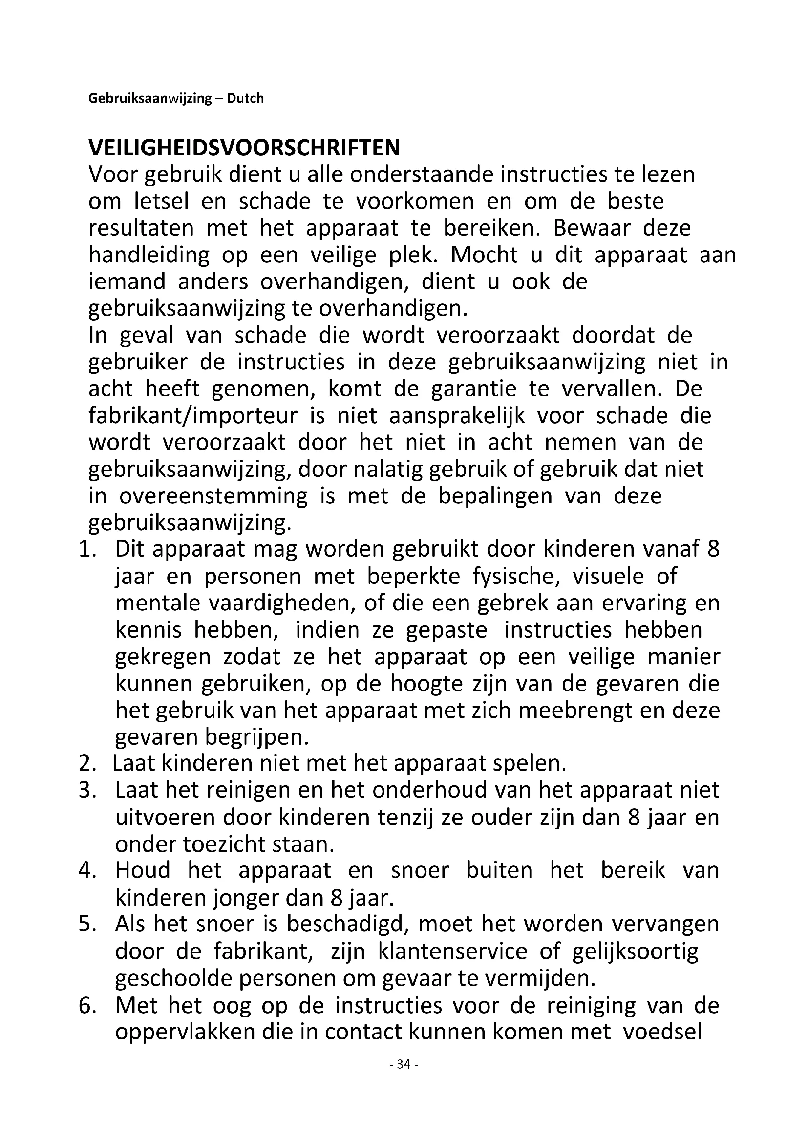 1. Dit apparaat mag worden gebruikt door kinderen vanaf 8