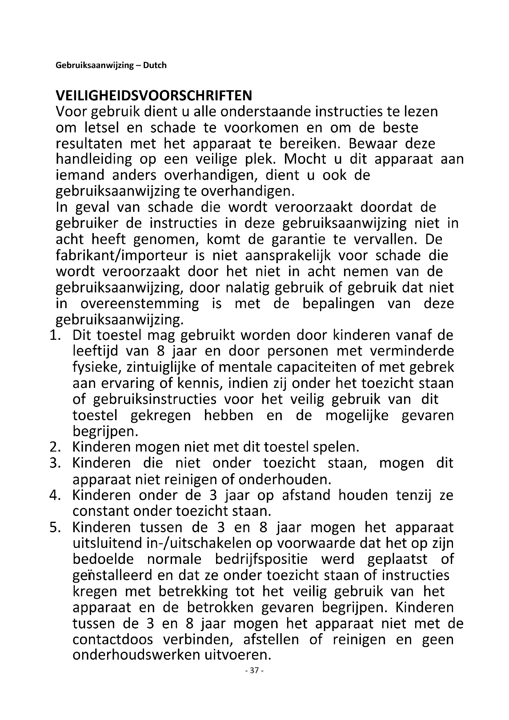 1. Dit toestel mag gebruikt worden door kinderen vanaf de