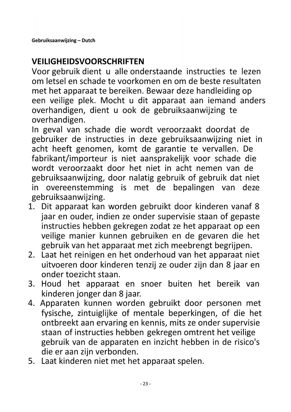 5. Laat kinderen niet met het apparaat spelen.- 24 -