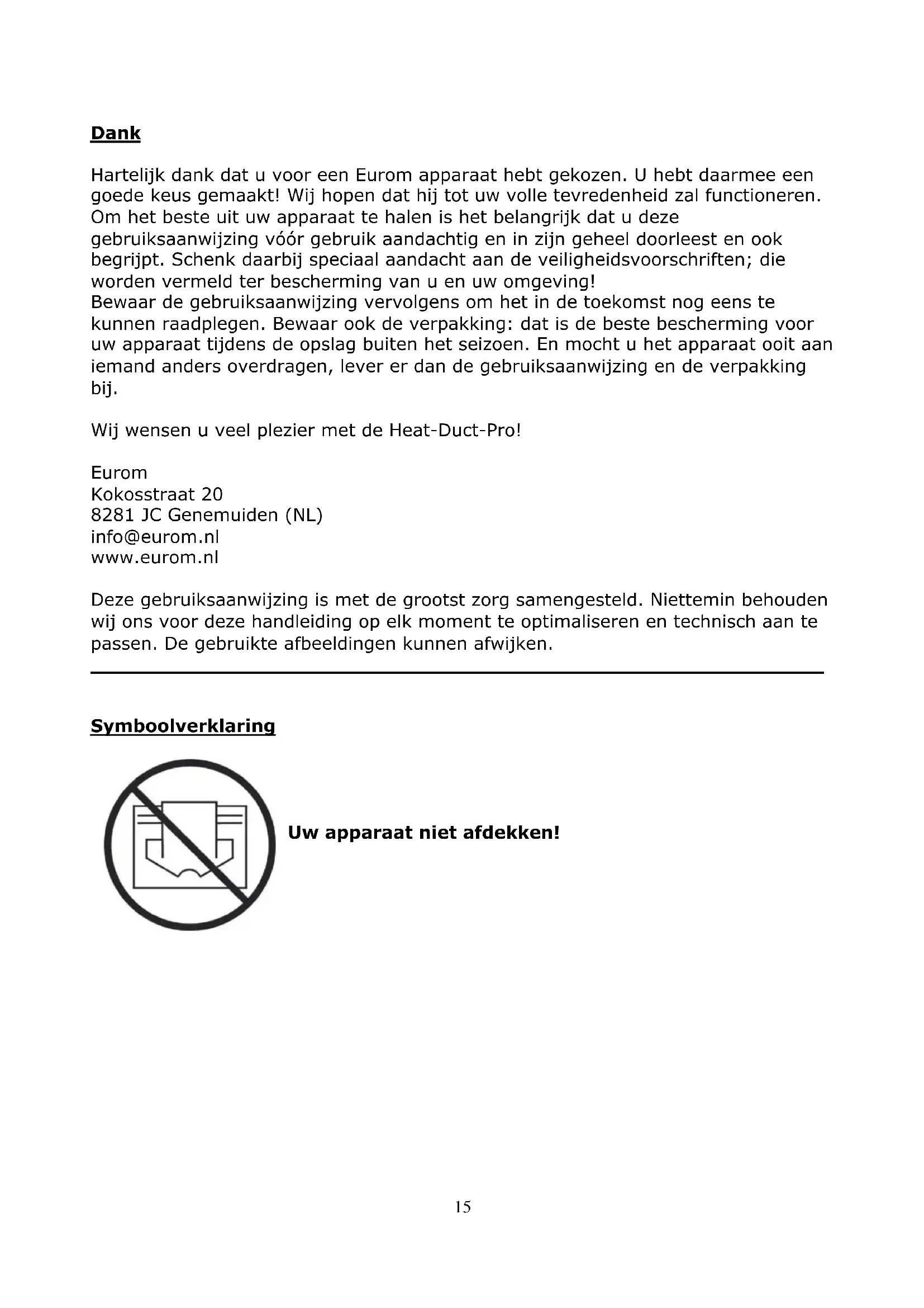 Vind de handleiding van het apparaat gratis HeatDuctPro 15kW Eurom in PDF-formaat.