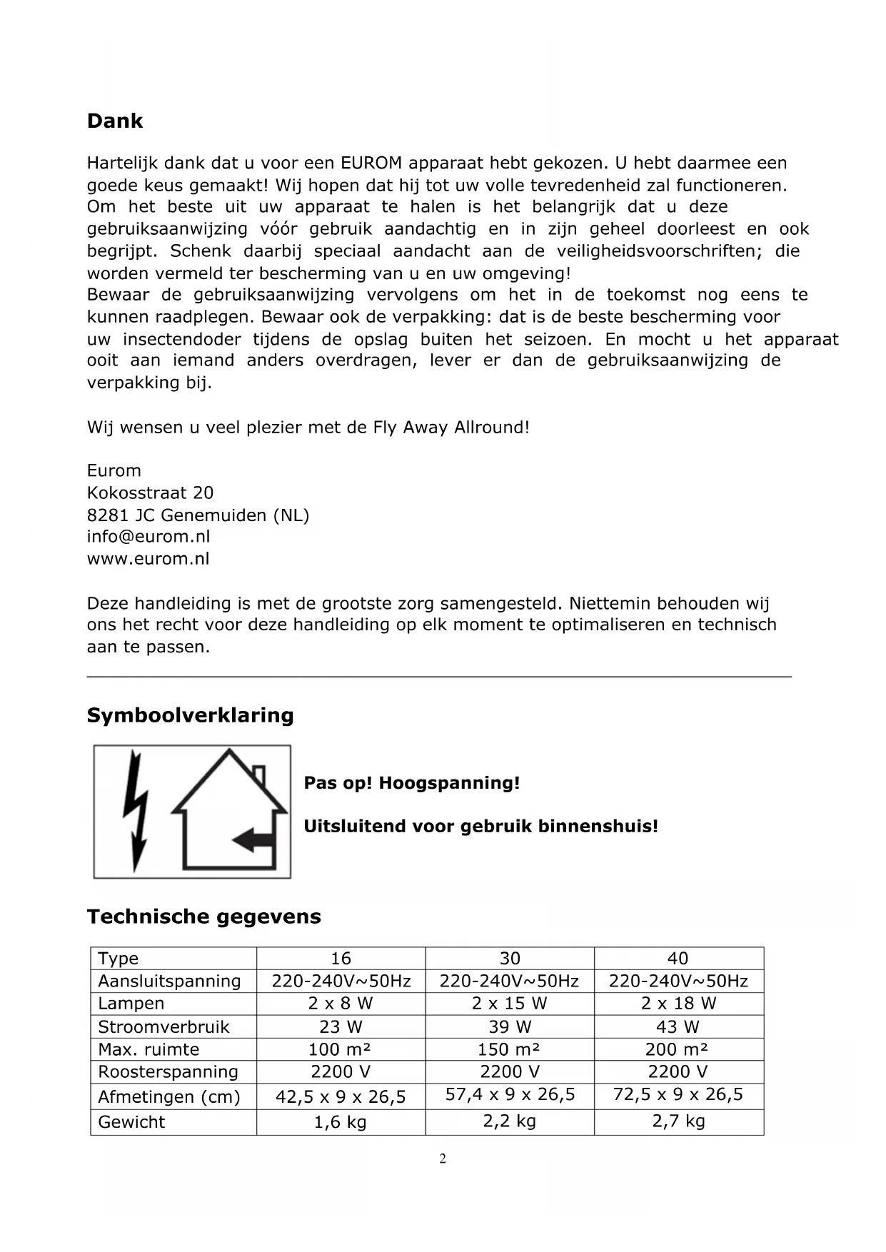 GEBRUIKSAANWIJZING Fly Away 40 Allround Eurom