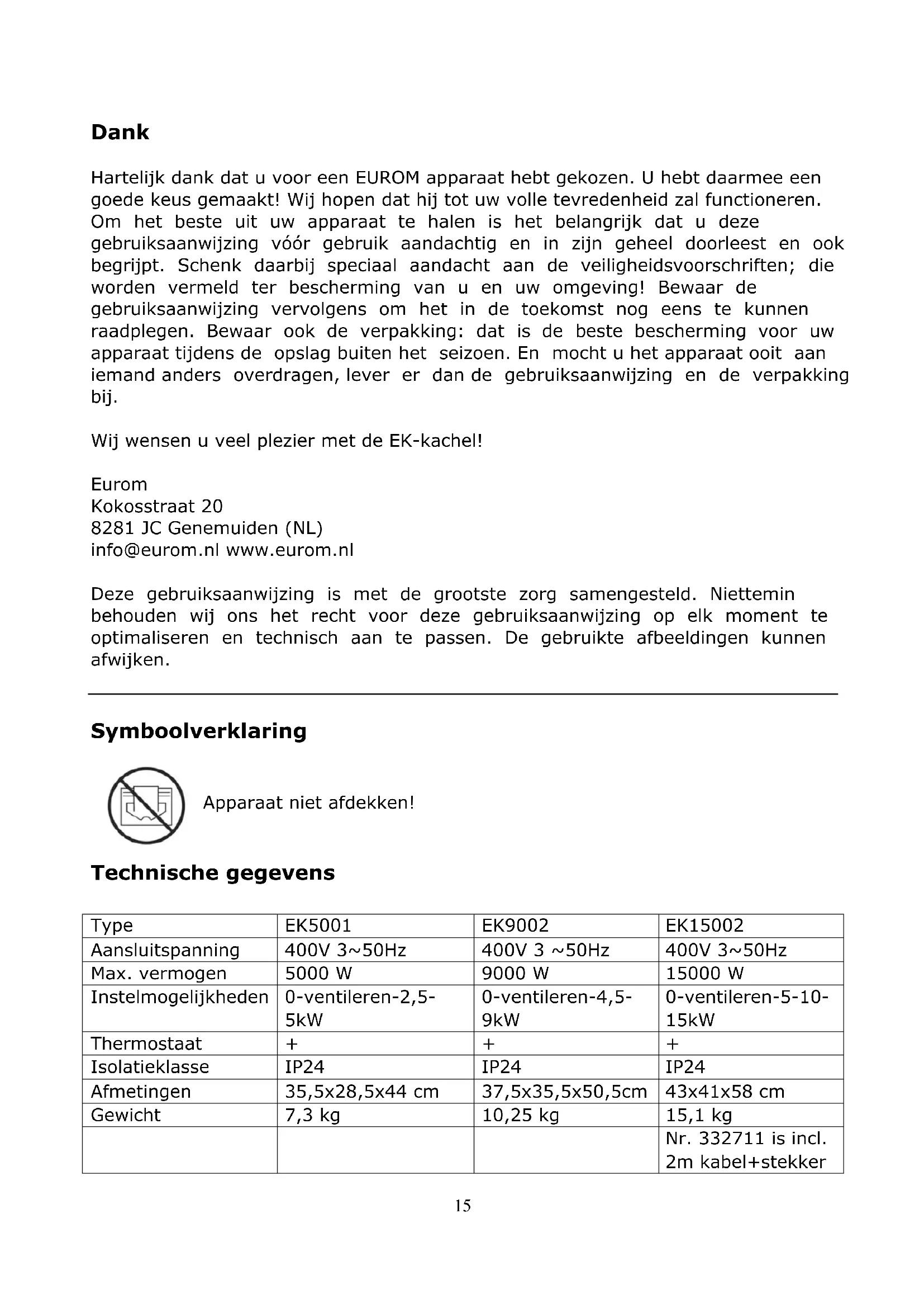 GEBRUIKSAANWIJZING EK15002 Eurom