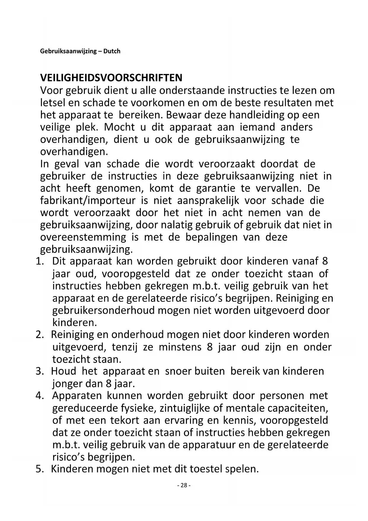 5. Kinderen mogen niet met dit toestel spelen.- 29 -