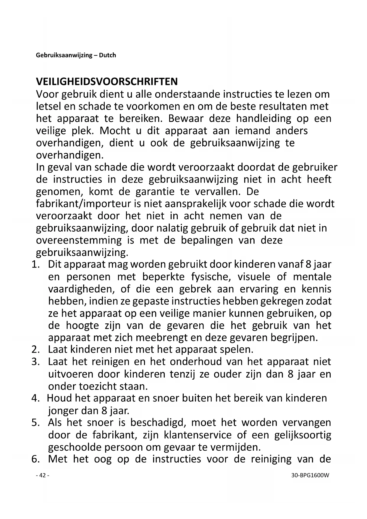 6. Met het oog op de instructies voor de reiniging van de- 43 - 30-BPG1600W