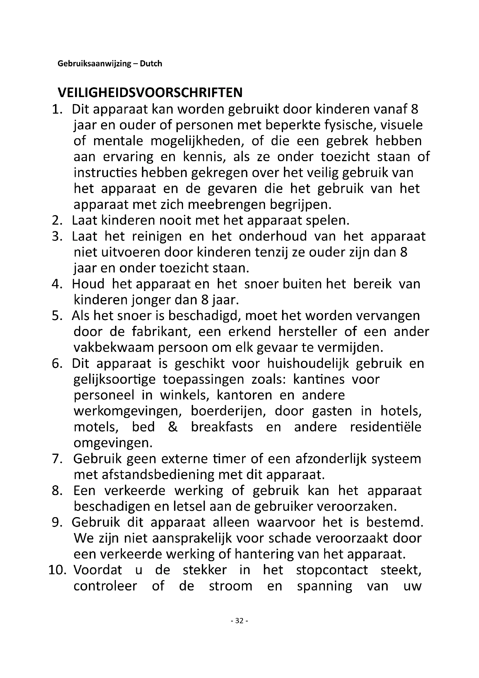 controleer of de stroom en spanning van uw- 33 - elektriciteitsnet overeenstemmen met deze vermeld op het typeplaatje.