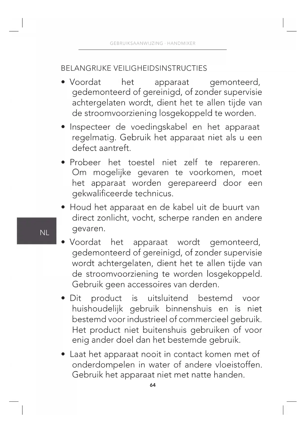 GEBRUIKSAANWIJZING · HANDMIXER PRODUCTOVERZICHT