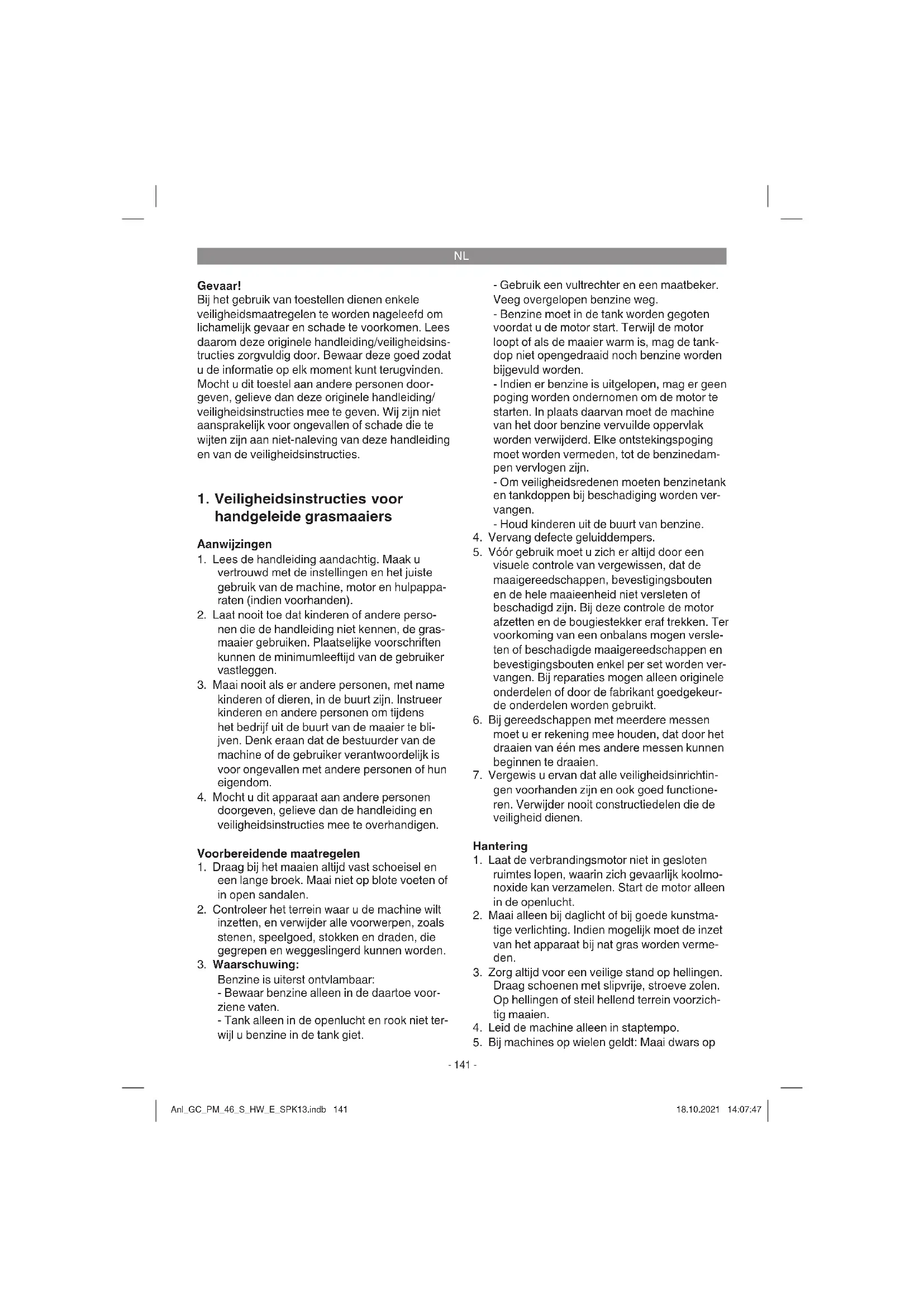 nooit binnen een gebouw waar benzinedam- Anl_GC_PM_46_S_HW_E_SPK13.indb 142Anl_GC_PM_46_S_HW_E_SPK13.indb 142 18.10.2021 14:07:4718.10.2021 14:07:47NL