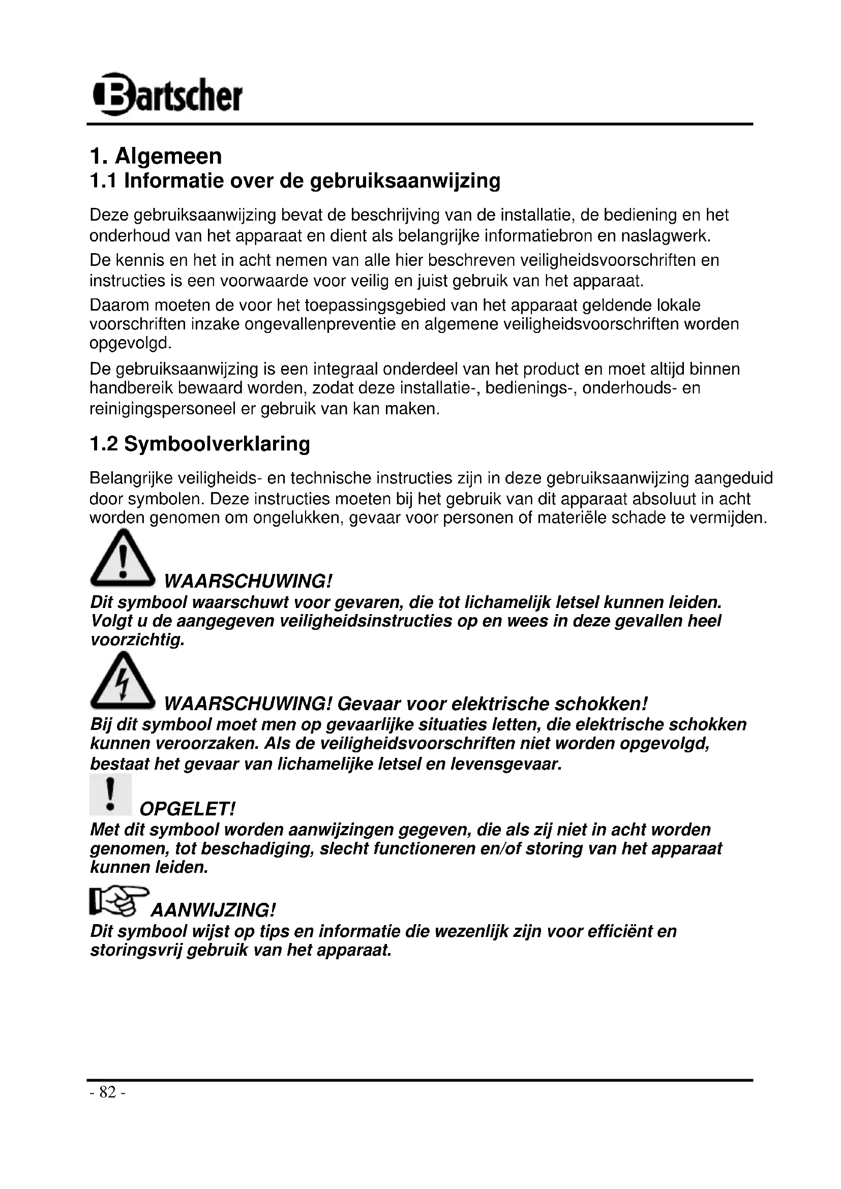 1.1 Informatie over de gebruiksaanwijzing