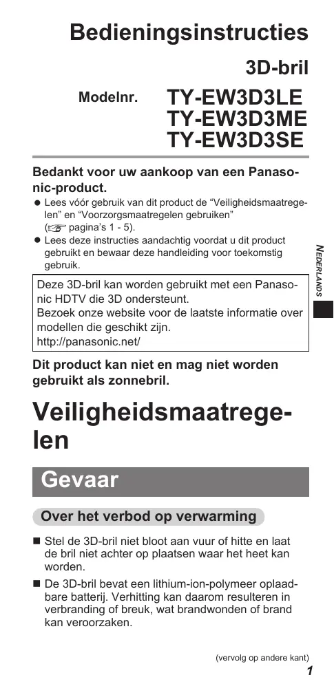 TY-EW3D3SE - Accessoires de télévision PANASONIC - Gratis gebruiksaanwijzing en handleiding