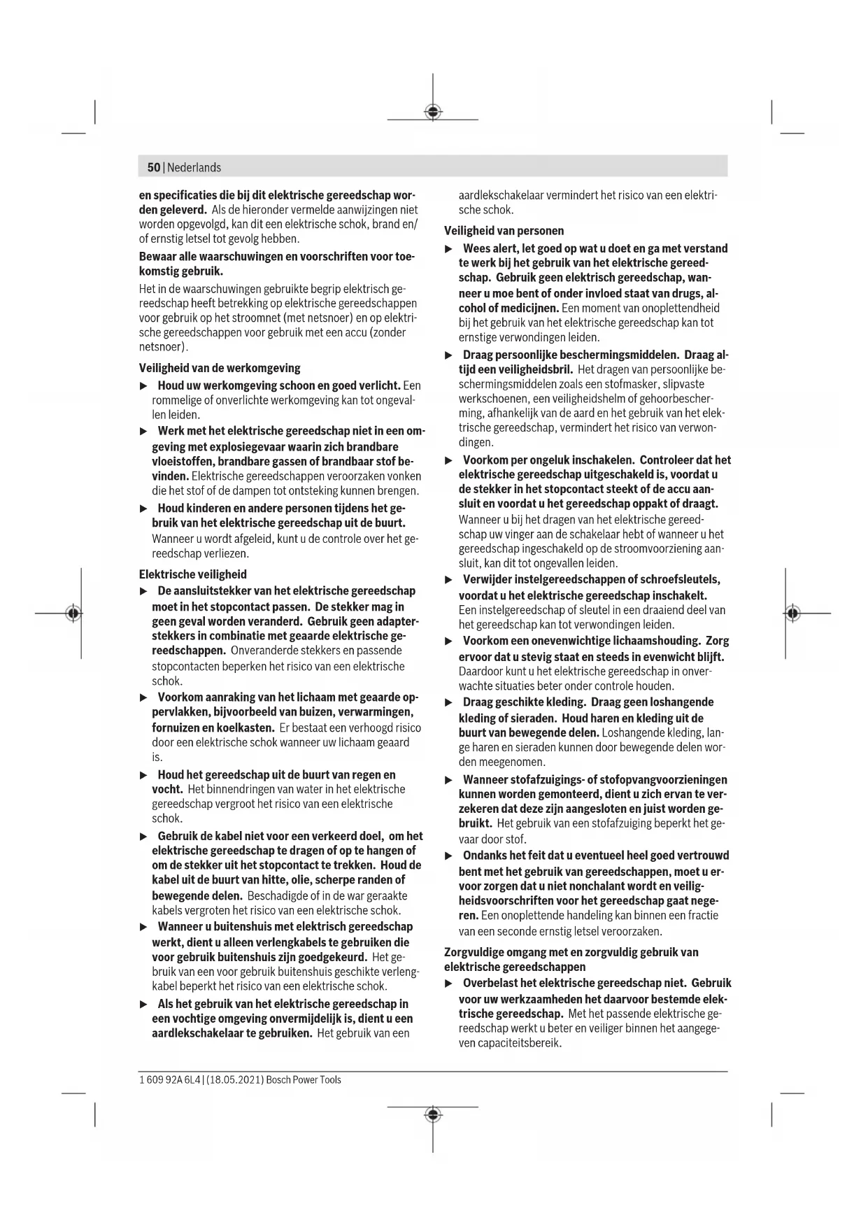 EU-conformiteitsverklaring Wij verklaren op eigen verantwoordelijkheid dat de genoemde producten voldoen aan alle desbetreffende bepalingen van de hierna genoemde richtlijnen en verordeningen en overeenstemmen met de volgende normen. Technisch dossier bij: * Elektrische rechte schroevendraaier met duwstart/ Productnummer Bosch Power Tools 1 609 92A 6L4 | (18.05.2021)II Elektrische rechte schroevendraaier met hendelstart