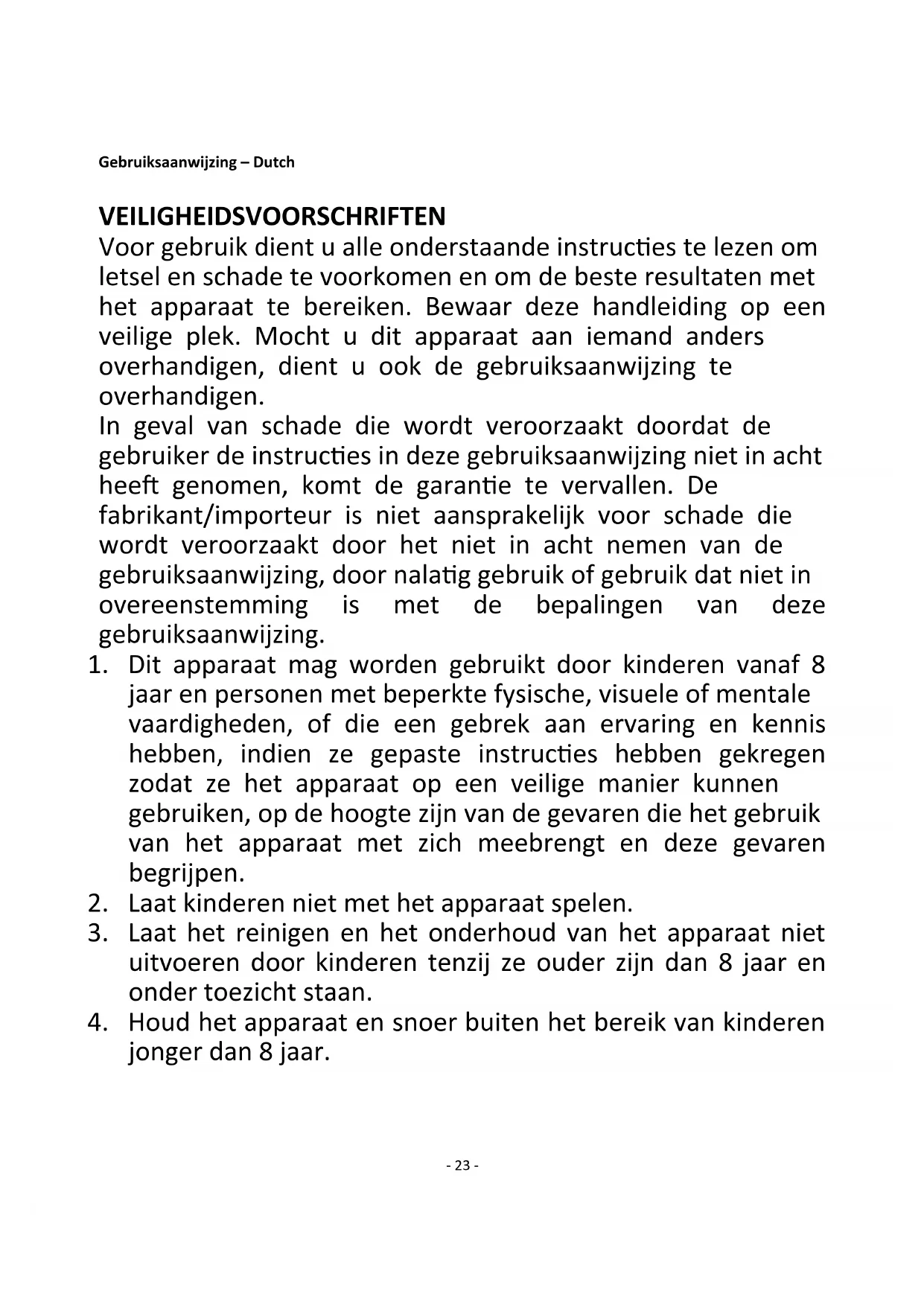 1. Dit apparaat mag worden gebruikt door kinderen vanaf 8