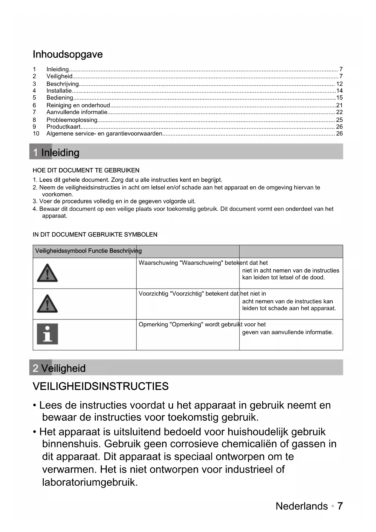 - Lees de instructies voordat u het apparaat in gebruik neemt en bewaar de instructies voor toekomstig gebruik.