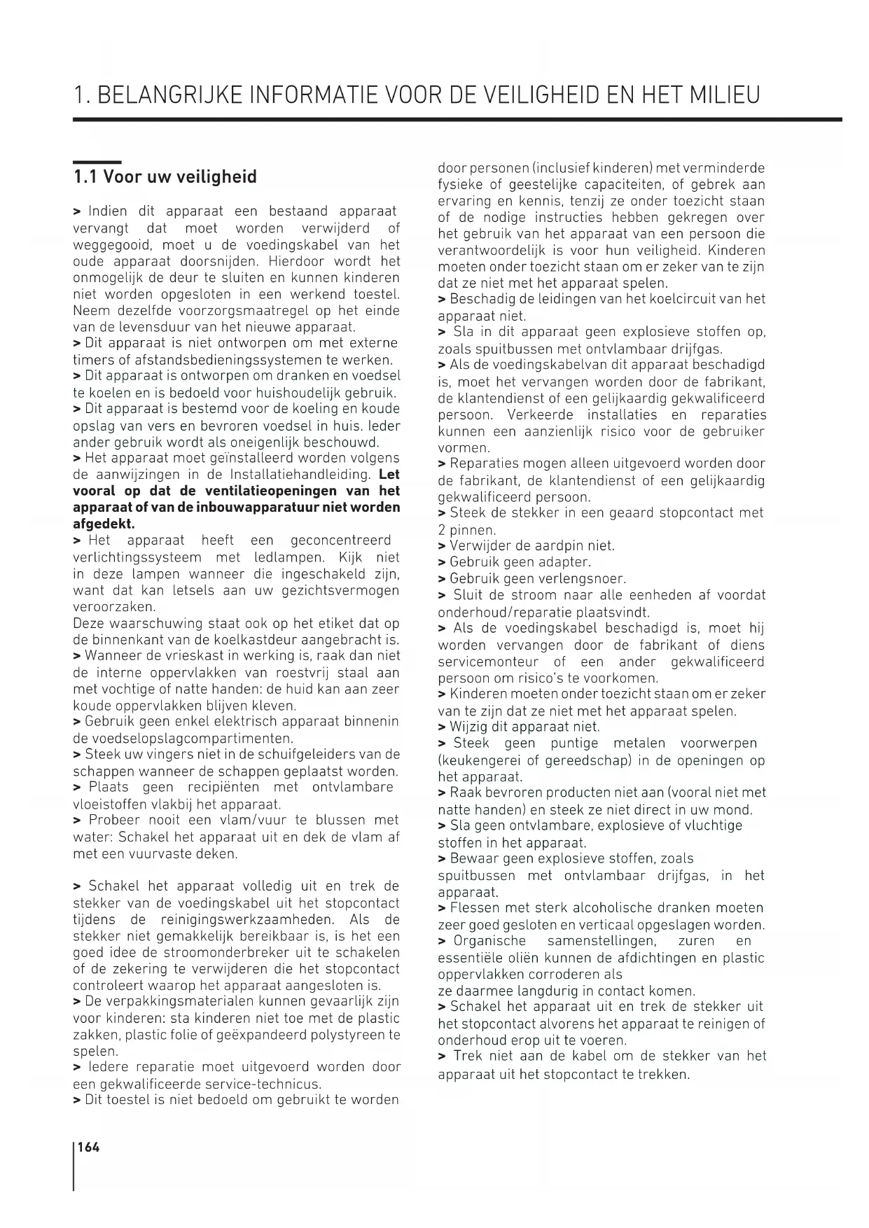 1. BELANGRIJKE INFORMATIE VOOR DE VEILIGHEID EN HET MILIEU