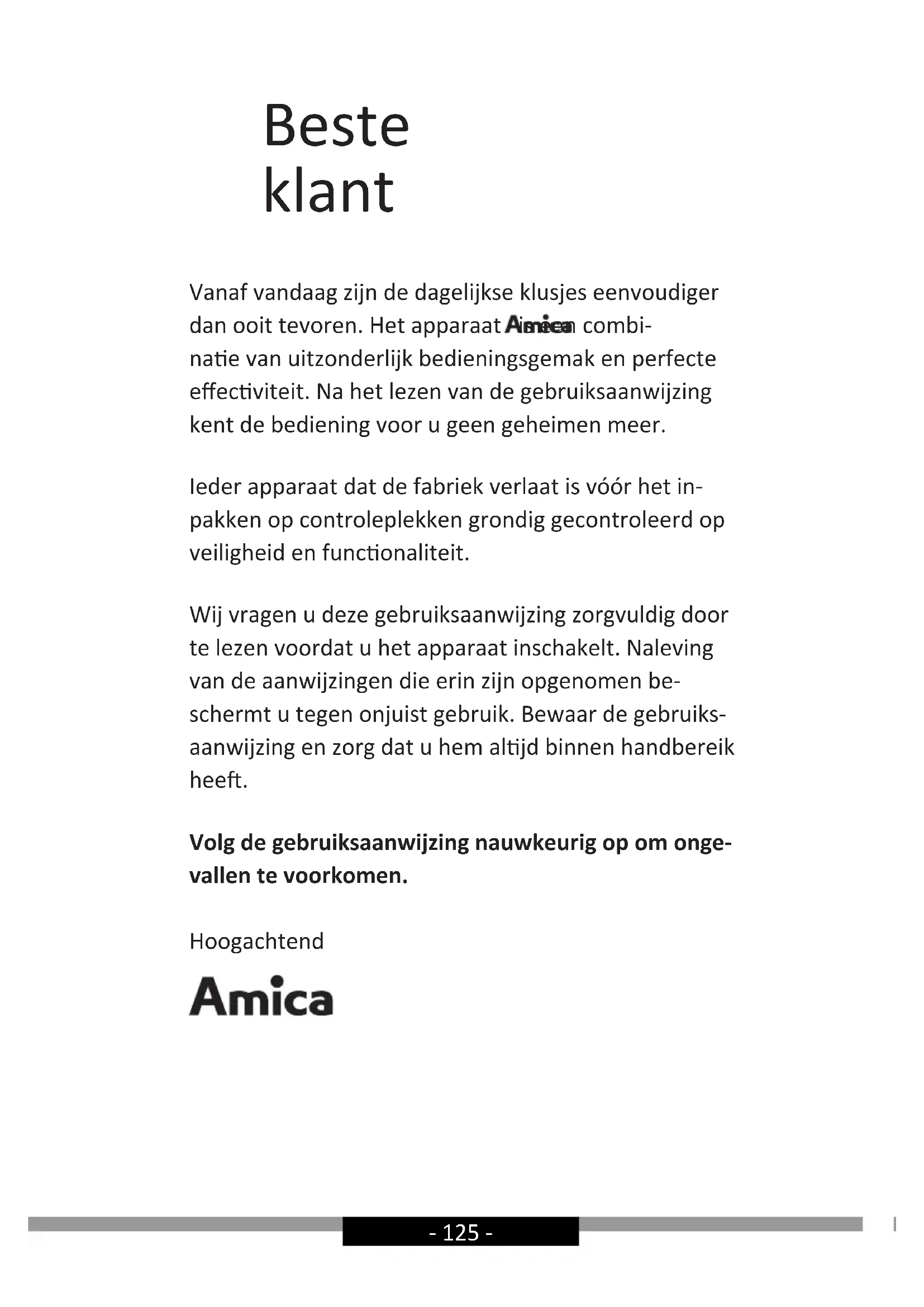 Wij VXJe gebruiksaanwijzing zorgvuldig doorte lezen voordat u het apparaat inschakelt. Naleving van de aanwijzingen die erin zich opgenomen beschermt u tegen onjuist gebruik. Bewaar de gebruiksaanwijzing en zorg dat u hem.altijd binnen handbereik heeft.