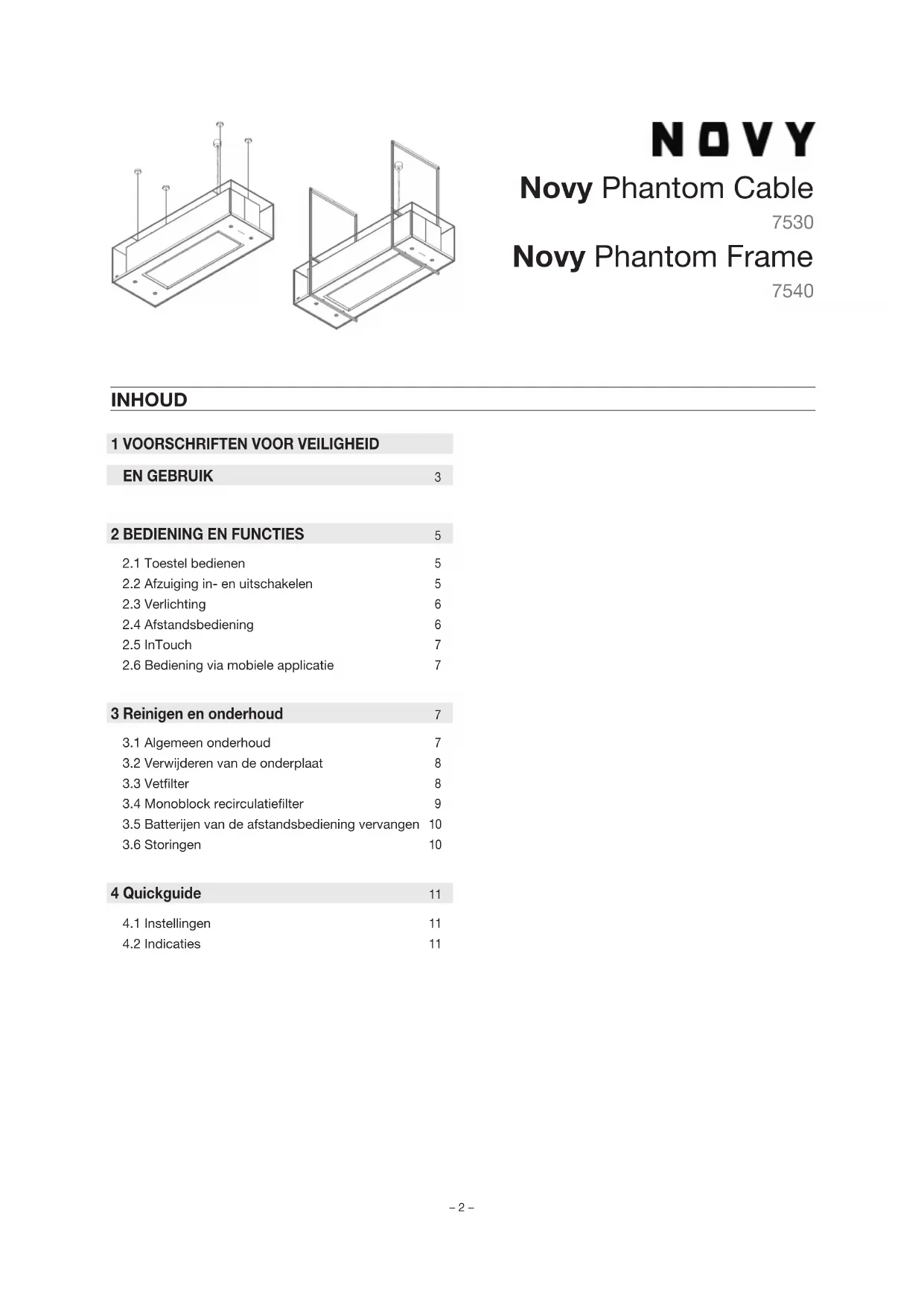 Phantom 7530 - Afzuigkap NOVY - Gratis gebruiksaanwijzing en handleiding