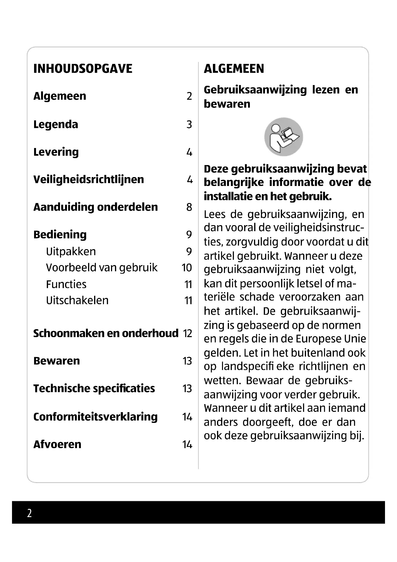 - Als de netvoeding of de aan- sluitkabel beschadigd is, mag deze niet meer worden ge- bruikt en moet deze worden vervangen door een netvoe- ding van hetzelfde type. Algemene veiligheidsvoor- schriften