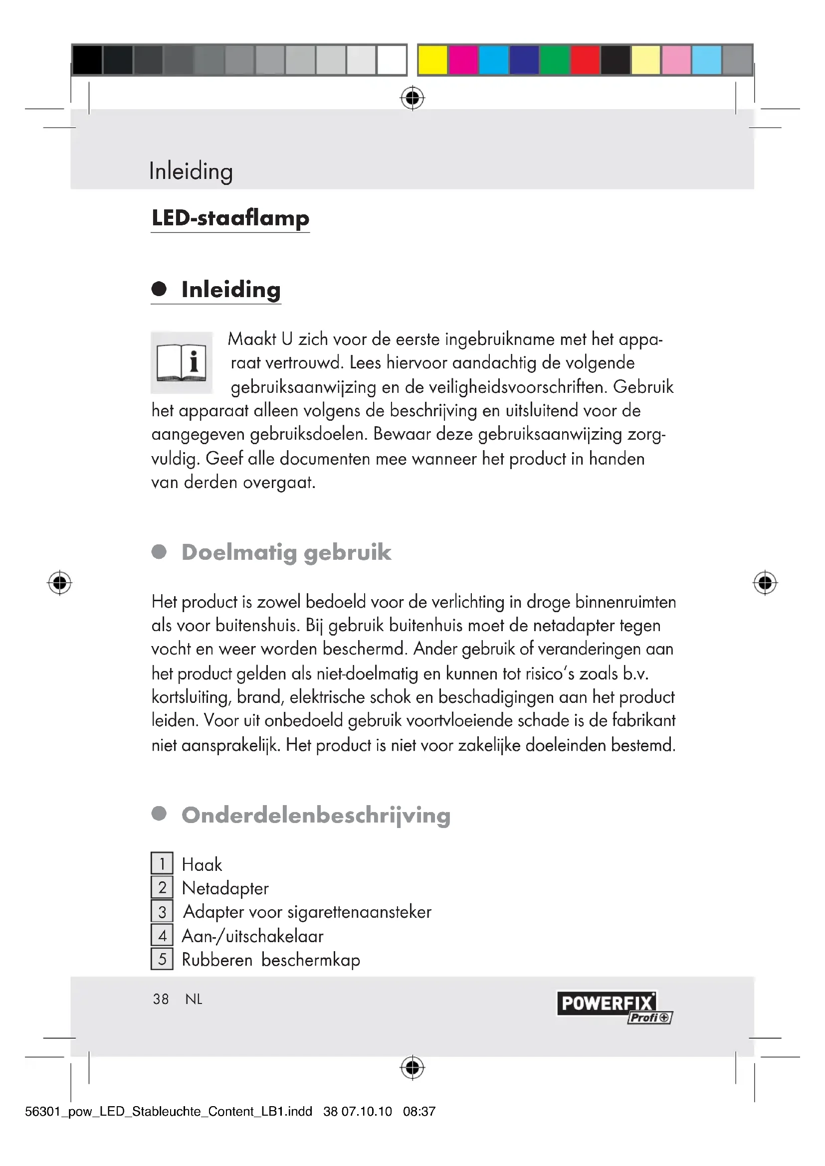 op ‘0’ zetten). 56301_pow_LED_Stableuchte_Content_LB1.indd 42 07.10.10 08:3743 NL Vóór het gebruik / Gebruik Verwijder de rubberen beschermkap