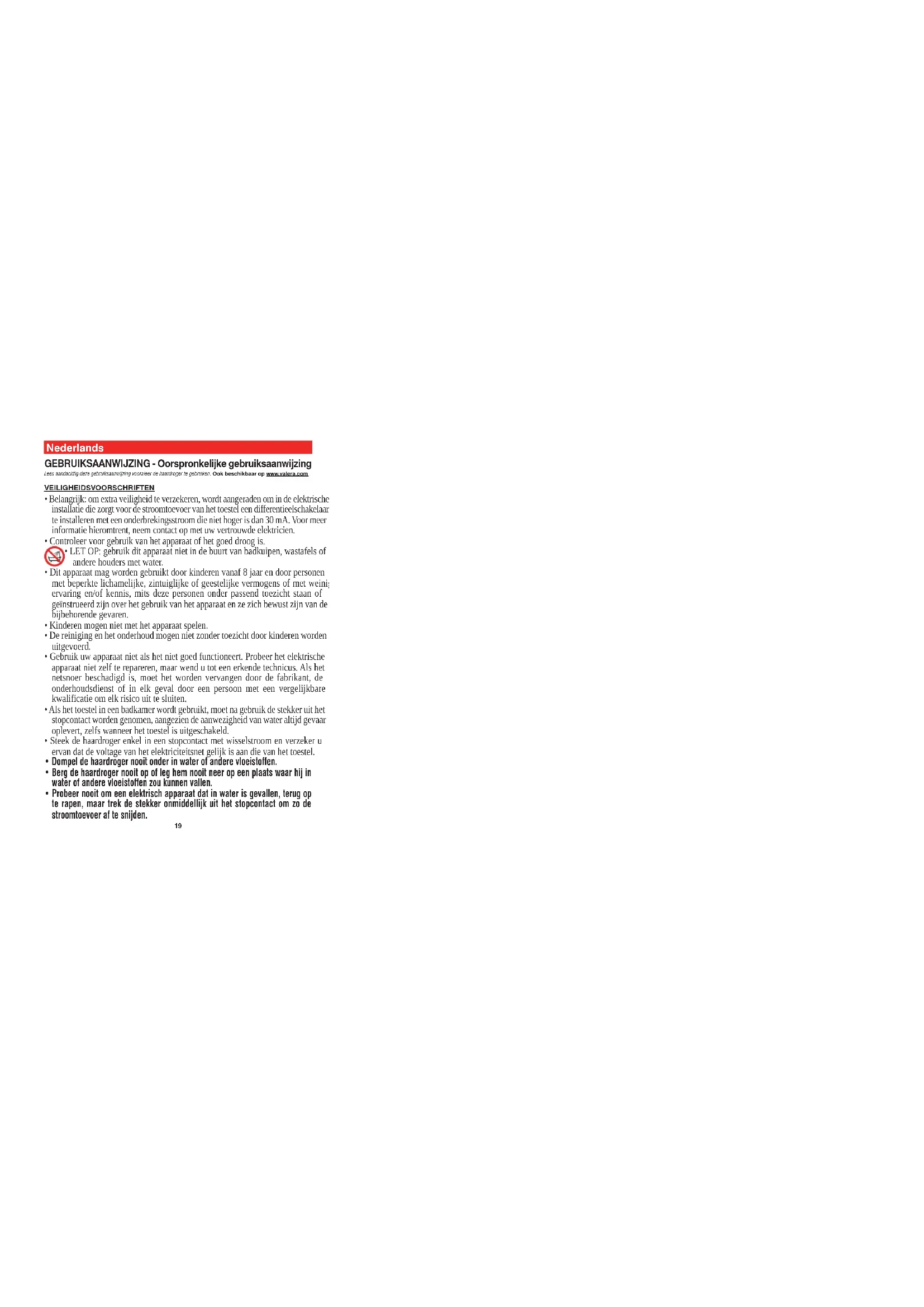 Trek altijd de stekker uit het stopcontact vooraleer u de haardroger reinigt. Maak het apparaat schoon met een met water bevochtigde doek. Maar dompel de haardroger nooit onder in water of andere vloeistoffen! Bescherm uw haardroger tegen stof. Reinig de roosters voor luchttoevoer en –afvoer indien nodig met een zachte borstel. LET OP: het is streng verboden om de föhn schoon te maken met schoonmaakmiddelen, oplosmiddelen, alcohol en diverse chemische producten. Wijzigingen voorbehouden Garantie Valera biedt volgende garantievoorwaarden: