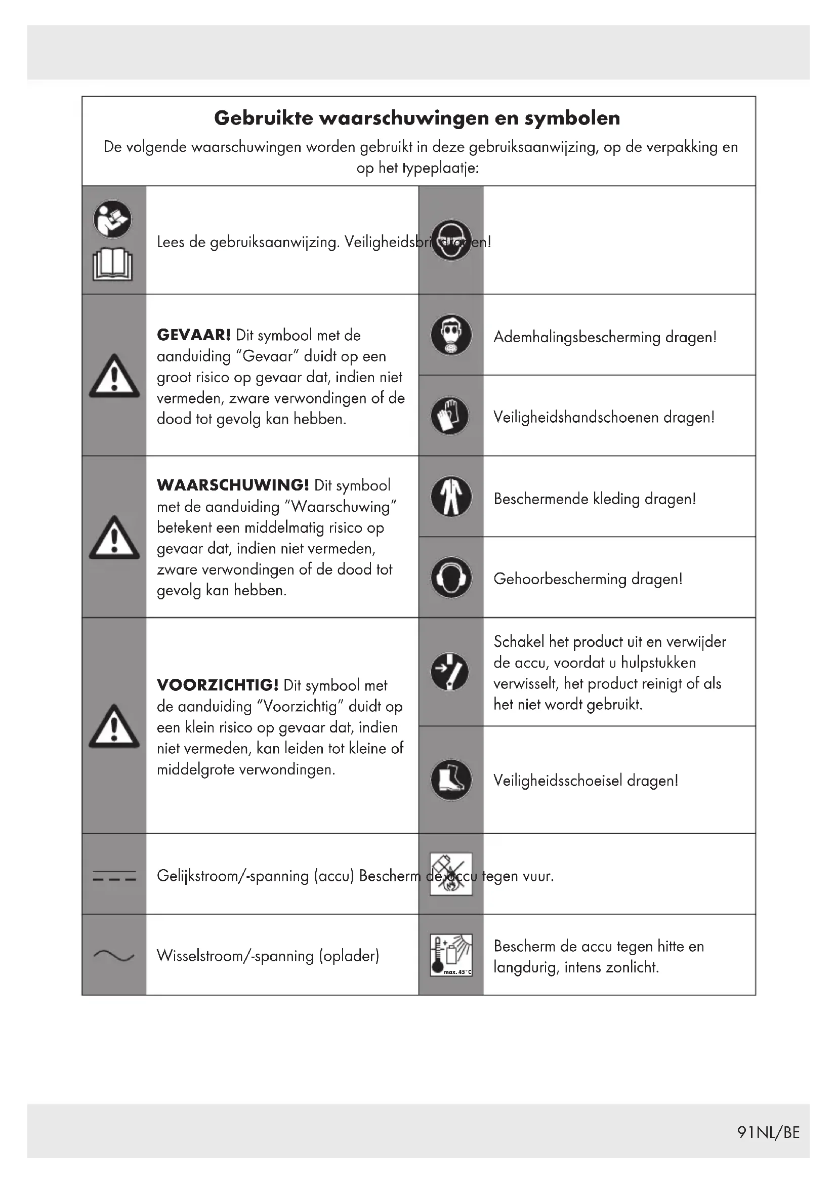 WAARSCHUWING! u Schakel het product vóór inspectie-, onderhouds- en schoonmaakwerkzaamheden altijd uit, verwijder de accu [] en laat het product afkoelen! u Voer reparaties en onderhoudswerkzaamheden alleen uit volgens deze gebruiksaanwijzing! Alle andere werkzaamheden moeten worden uitgevoerd door een gekwalificeerde persoon!