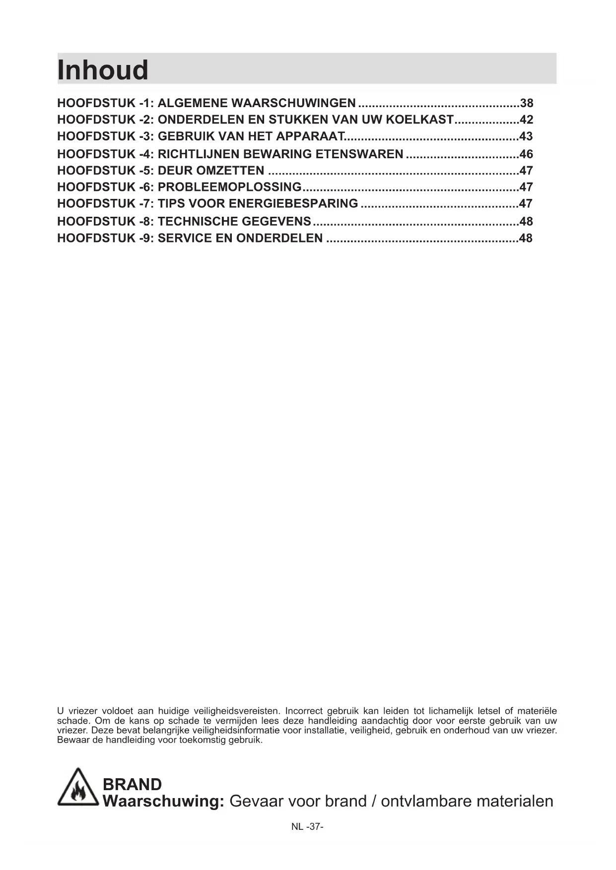 BRAND Waarschuwing: Gevaar voor brand / ontvlambare materialenNL -38-