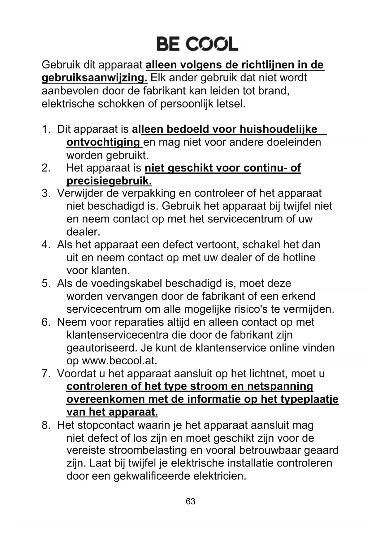 klantenservicecentra die door de fabrikant zijn geautoriseerd. Je kunt de klantenservice online vinden op www.becool.at.
