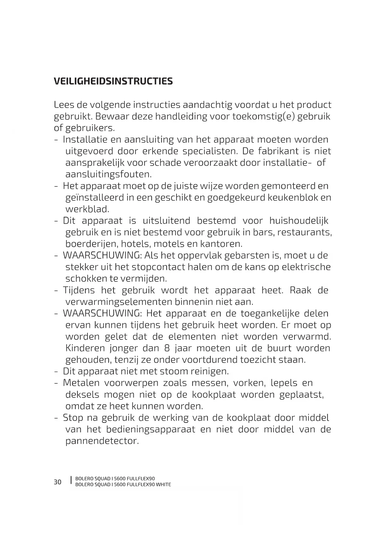 - Wanneer het voedsel begint te koken, zet dan het vermogen lager. - Als u een deksel gebruikt, wordt de kooktijd korter, wat energie bespaart. - Gebruik minder olie of vet om de bereidingstijd te verkorten.BOLERO SQUAD I 5600 FULLFLEX90