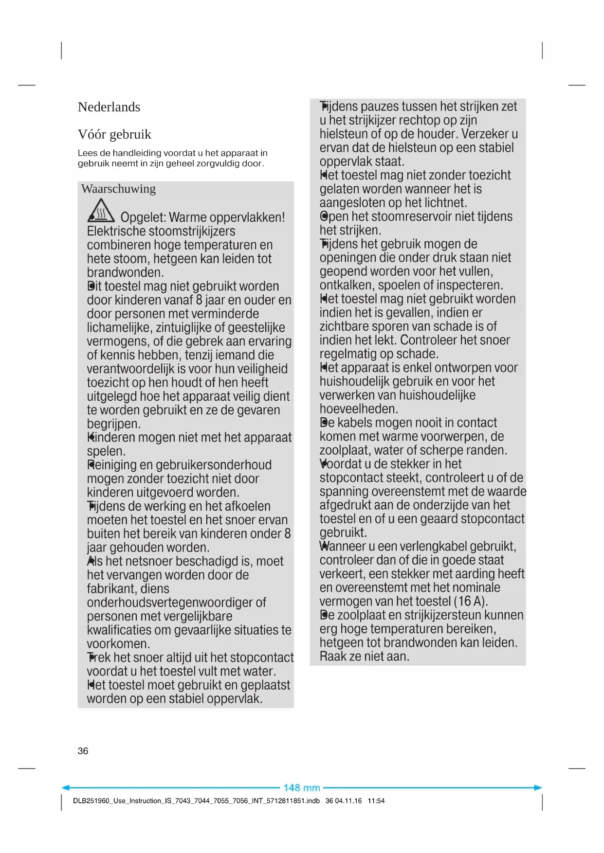 DLB251960_Use_Instruction_IS_7043_7044_7055_7056_INT_5712811851.indb 35 04.11.16 11:54Nederlands Vóór gebruik Lees de handleiding voordat u het apparaat in gebruik neemt in zijn geheel zorgvuldig door. Waarschuwing