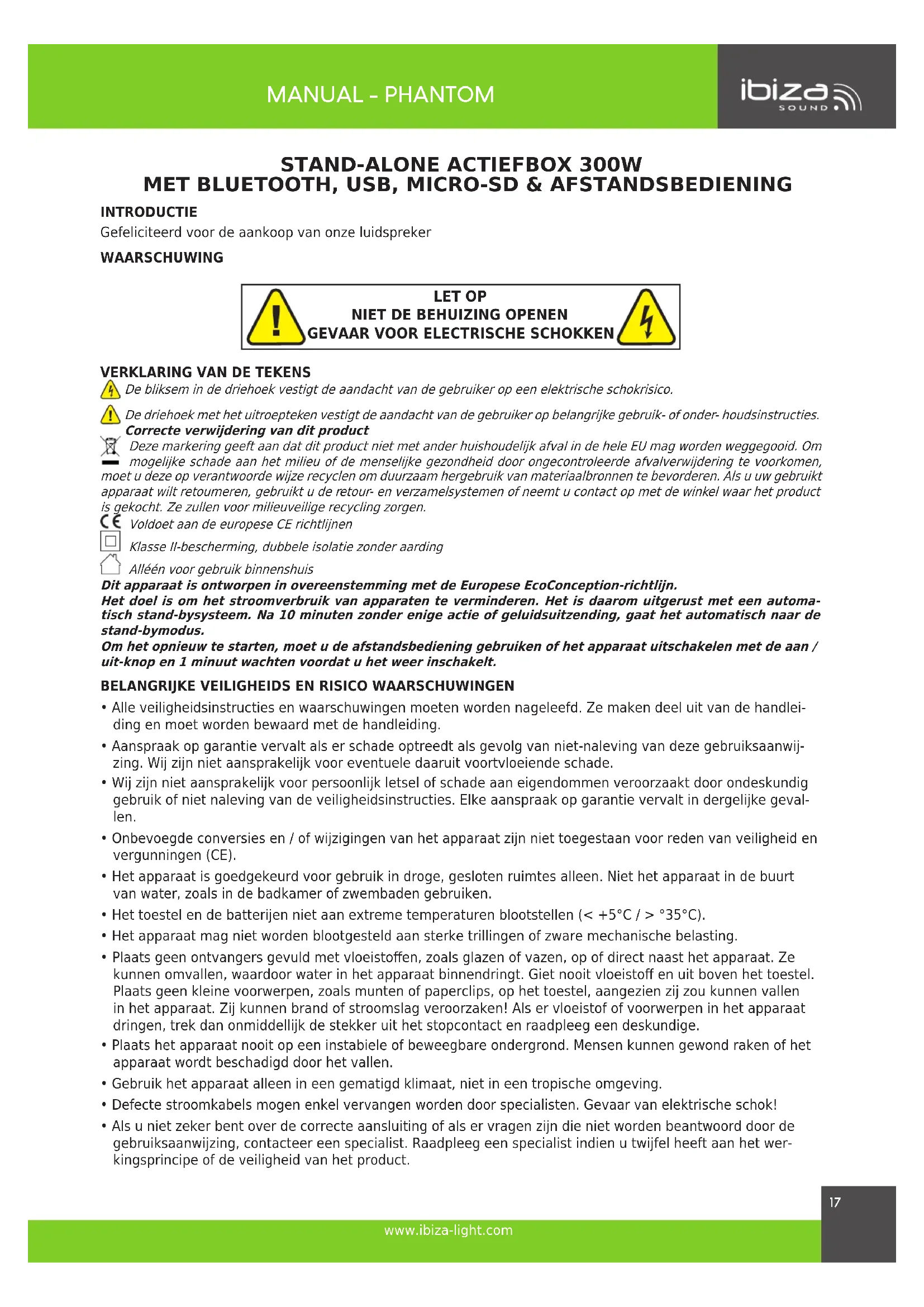 GEBRUIKSAANWIJZING PHANTOM IBIZA SOUND