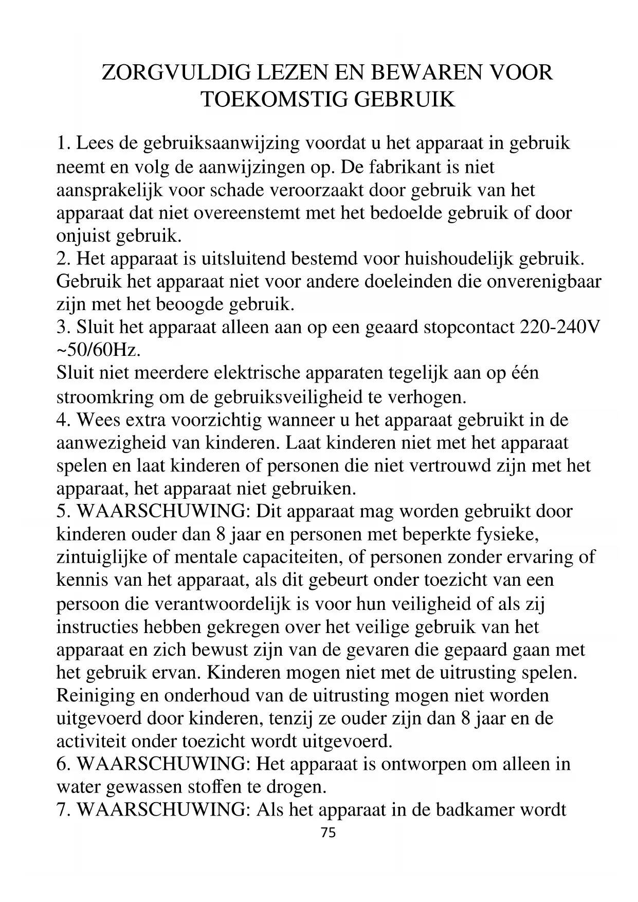 2. Het apparaat is uitsluitend bestemd voor huishoudelijk gebruik.