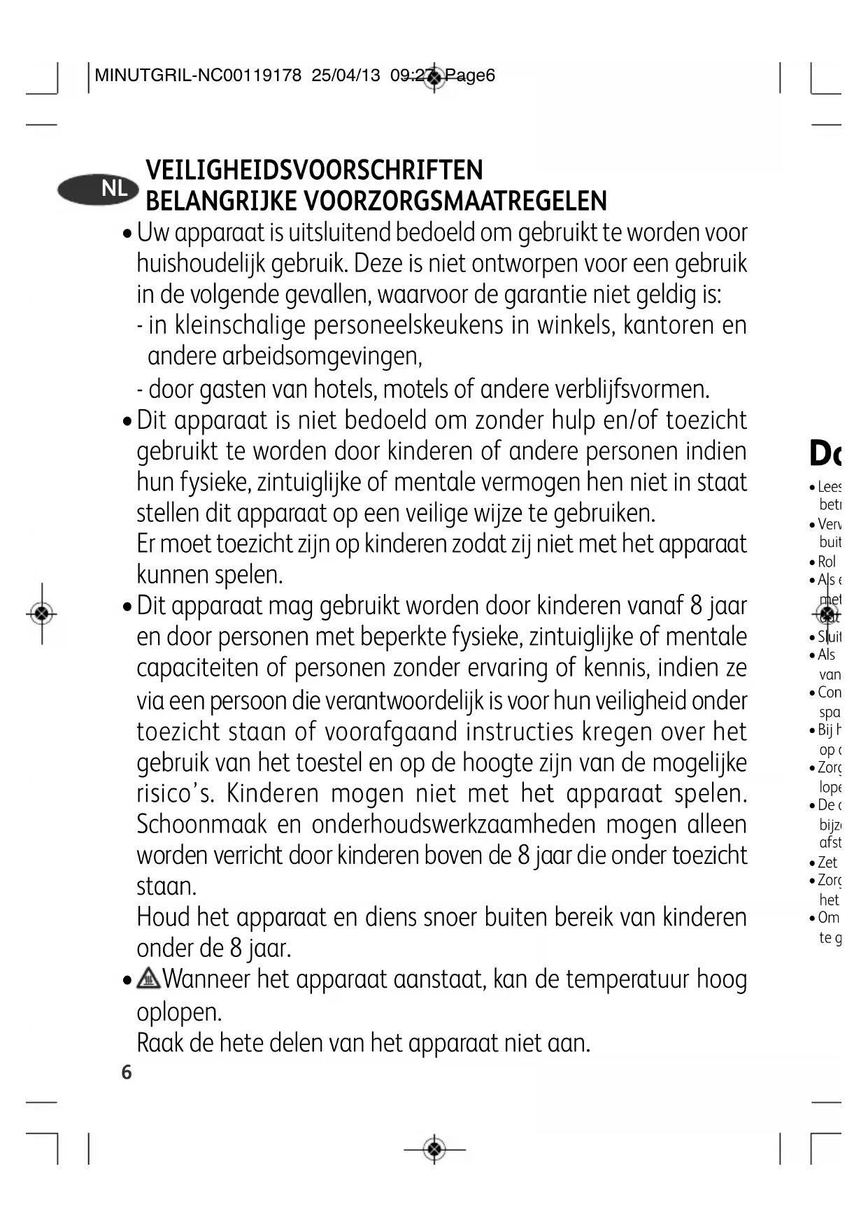 MINUTGRIL-NC00119178 25/04/13 09:27 Page8Gebruiksaanwijzing Achterin dit boekje vindt u illustraties ter verduidelijking.