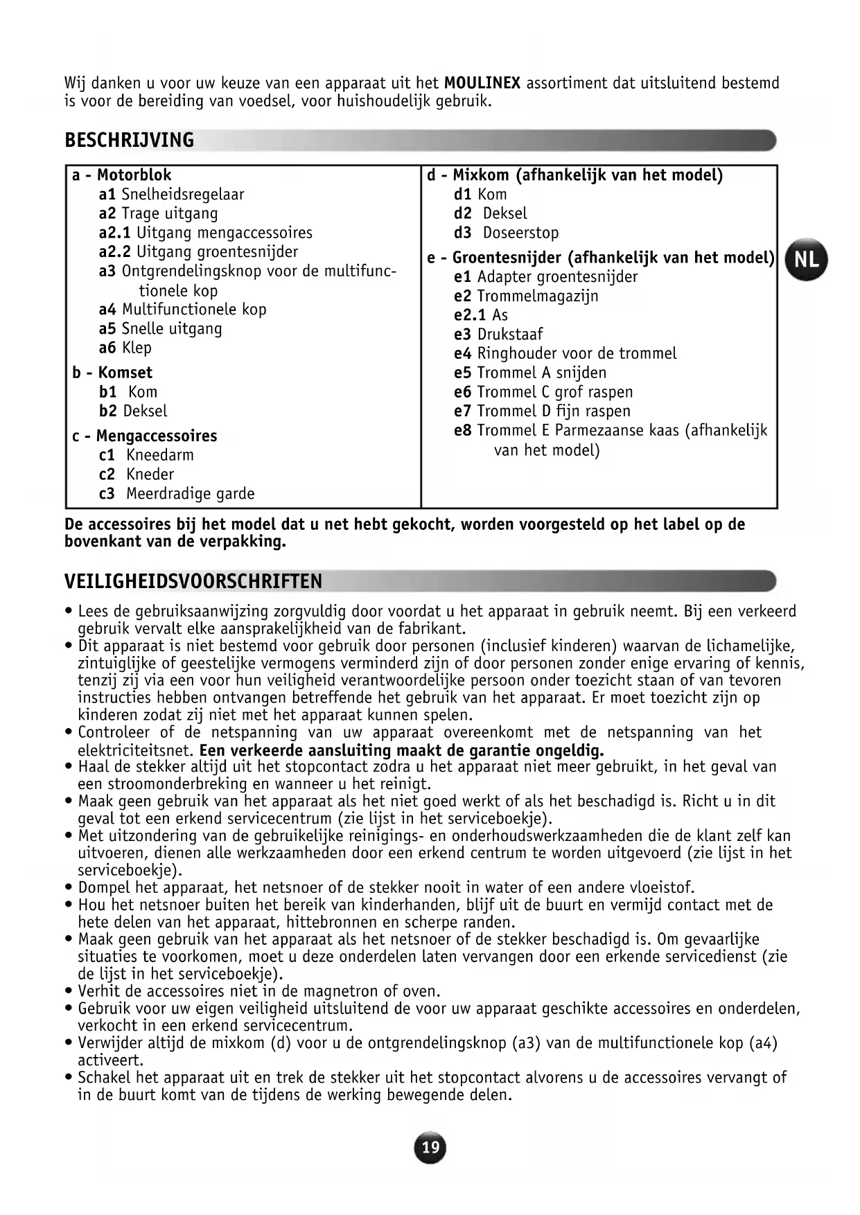 Wij danken u voor uw keuze van een apparaat uit het MOULINEX assortment dat uitsluitend bestemd is voor de bereiding van voedsel, voor huishoudelijk gebruik.