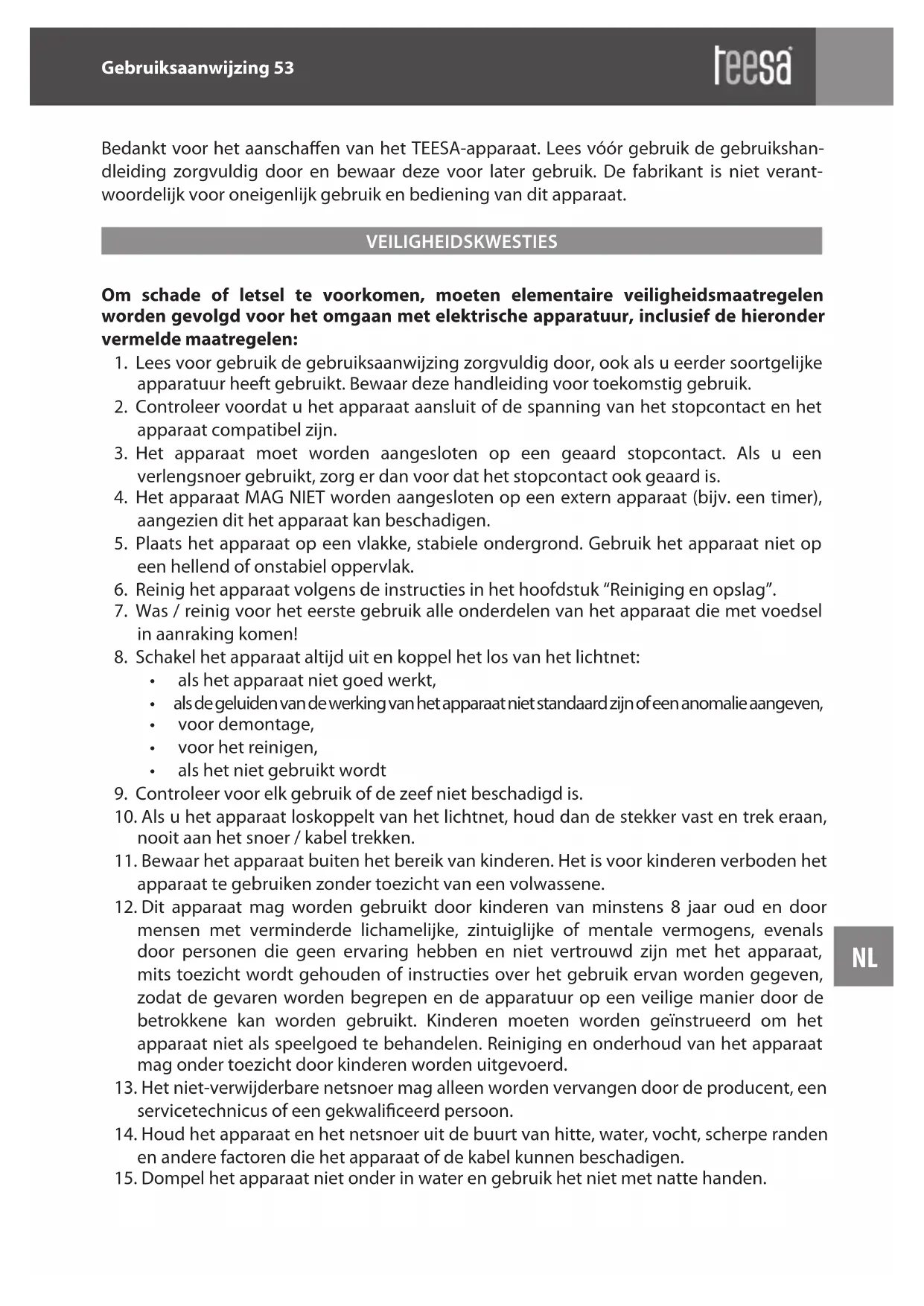 GEBRUIKSAANWIJZING TSA3228 Teesa