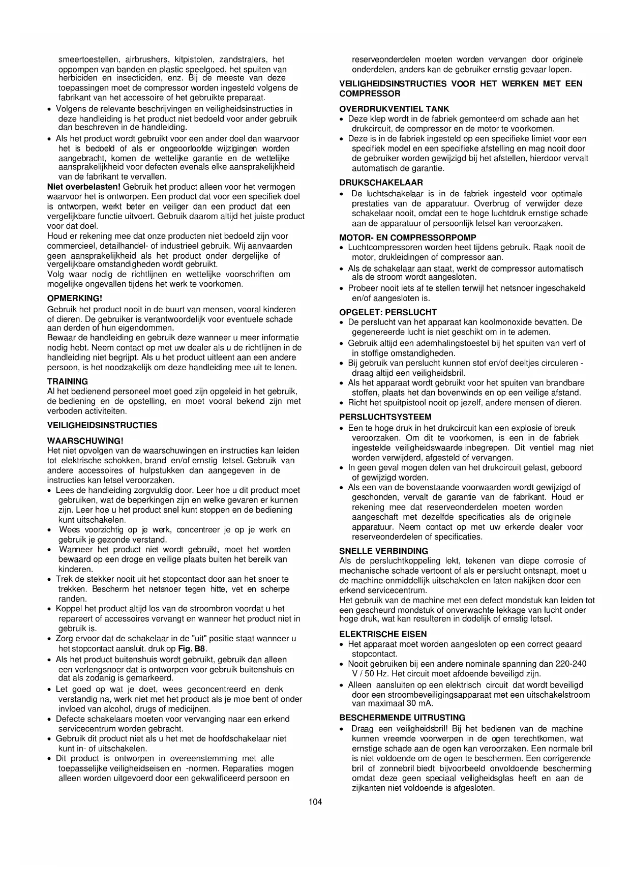 - Richt het spuitpistool nooit op jezelf, andere mensen of dieren. PERSLUCHTSYSTEEM