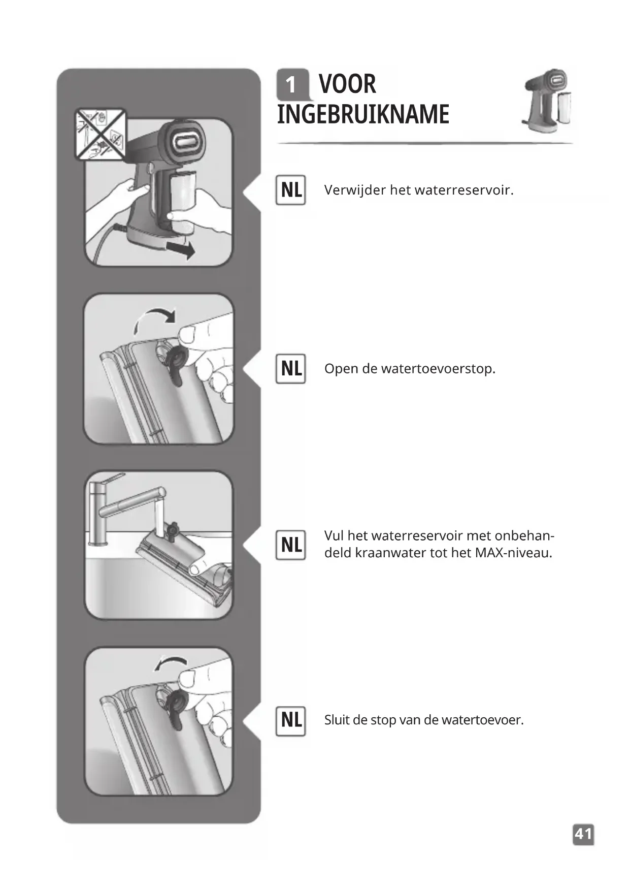 Sluit de stop van de watertoevoer. NL43