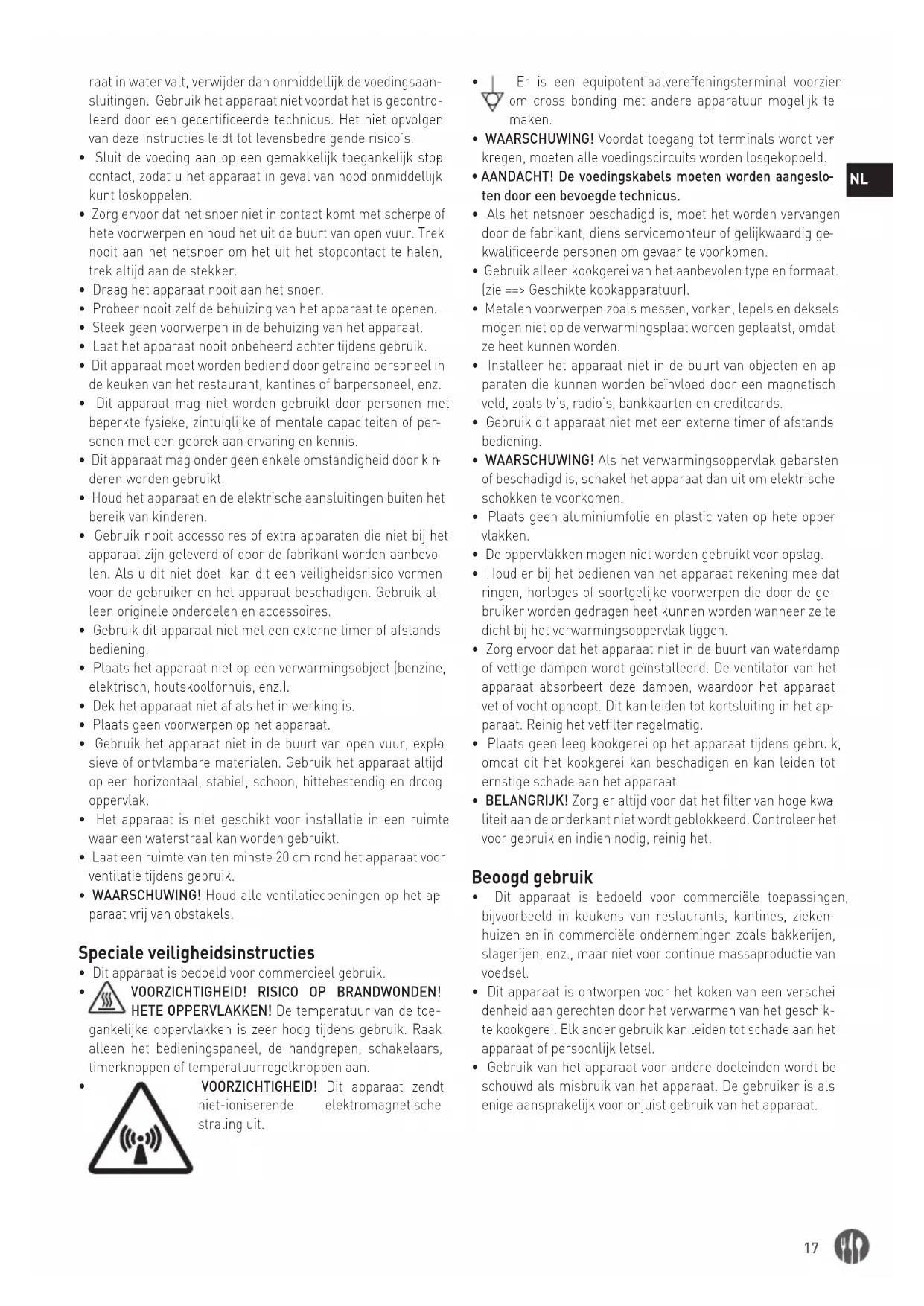 - Dit apparaat is bedoeld voor commerciële toepassingen, bijvoorbeeld in keukens van restaurants, kantines, zieken
