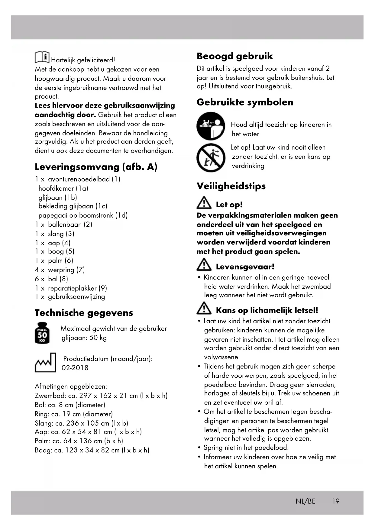 - Informeer uw kinderen over hoe ze veilig met het artikel kunnen spelen. NL/BE20