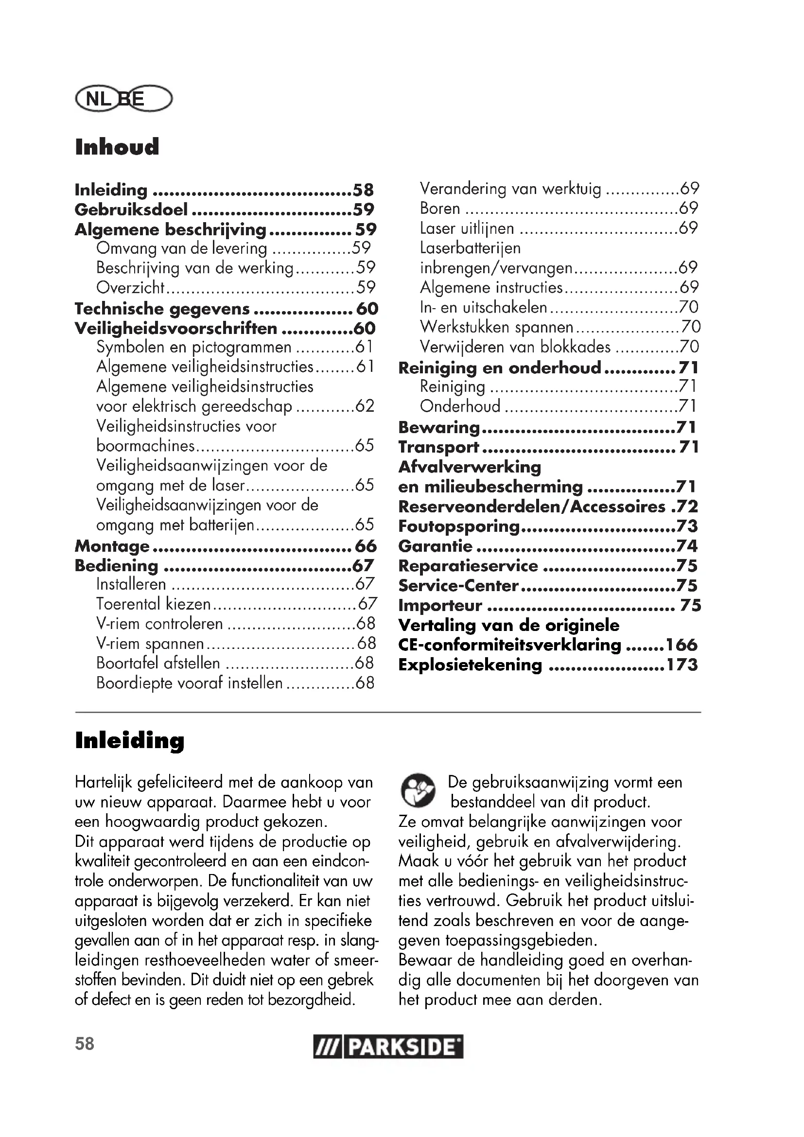 - Algemene veiligheidsinstructies voor elektrisch gereedschap p. 62