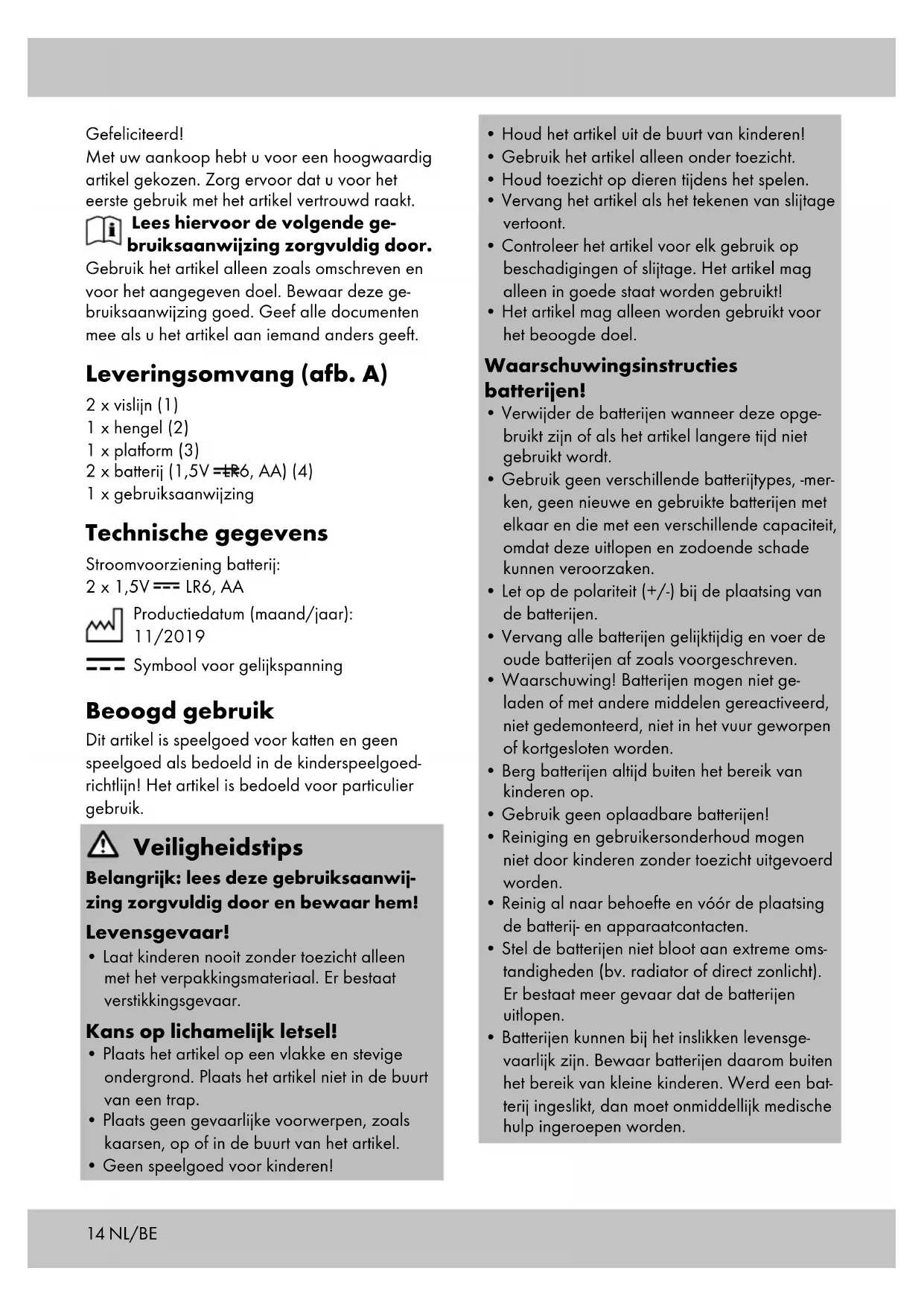 - Het artikel mag alleen worden gebruikt voor het beoogde doel. Waarschuwingsinstructies batterijen!